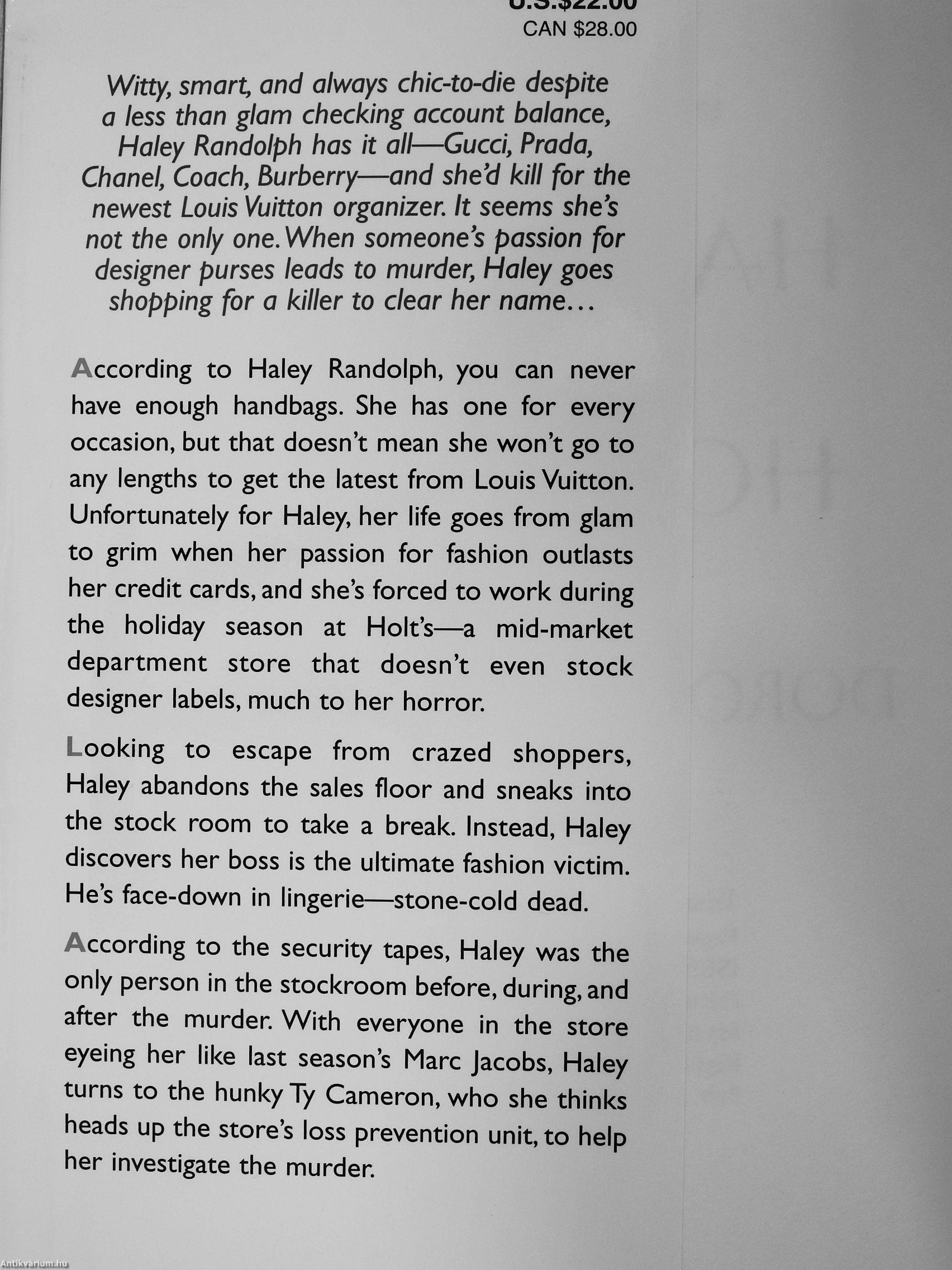 Witty, smart, and always chic-to-die despite a less than glam checking account balance. Haley Randolph has it all—Gucci, Prada, Chanel, Coach, Burberry—and she'd kill for the newest Louis Vuitton organizer. It seems she's not the only one. When someone's passion for designer purses leads to murder, Haley goes shopping for a killer to clear her name