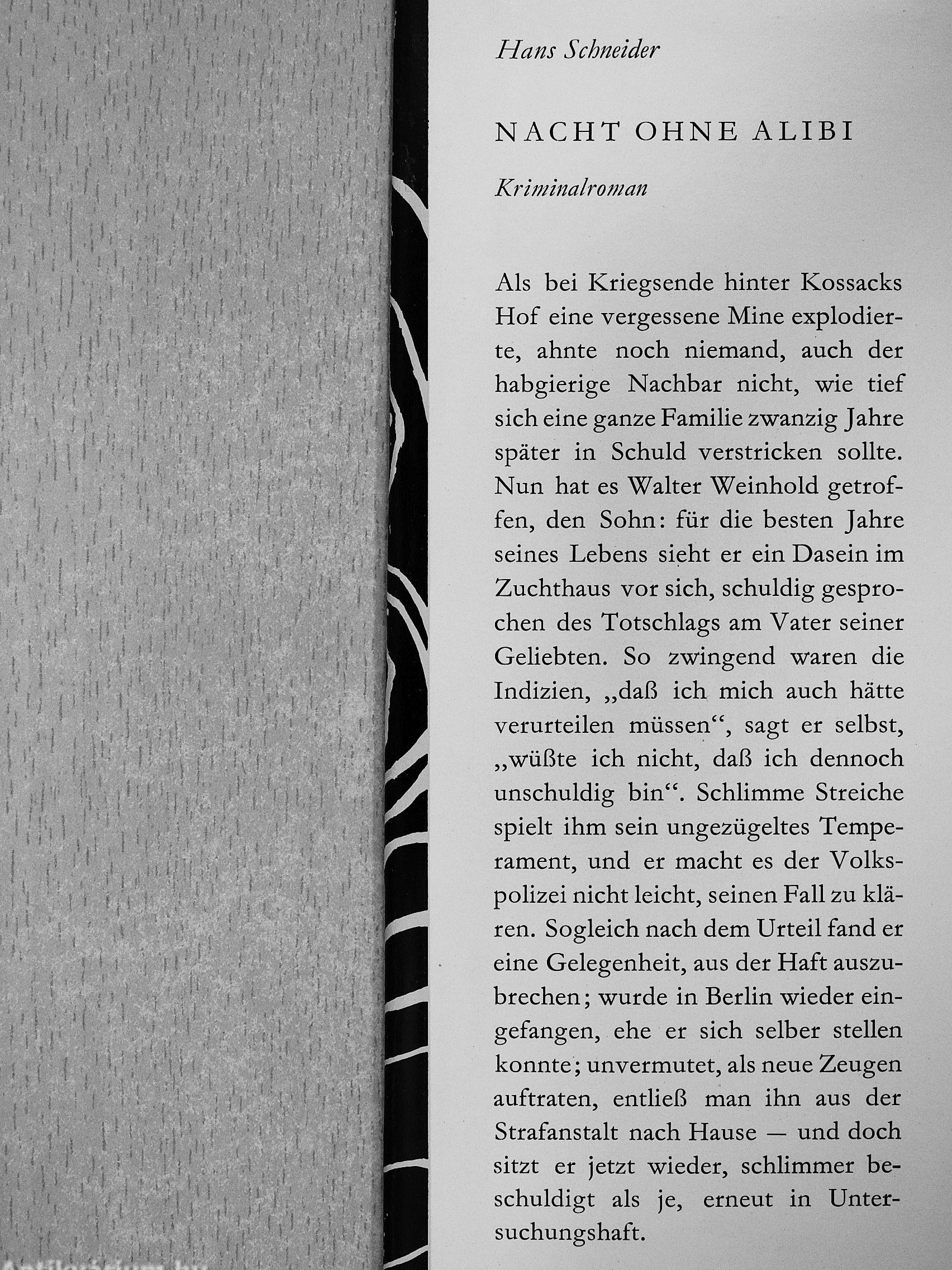 Als bei Kriegsende hinter Kossacks Hof eine vergessene Mine explodierte, ahnte noch niemand, auch der habgierige Nachbar nicht, wie tief sich eine ganze Familie zwanzig Jahre später in Schuld verstricken sollte. Nun hat es Walter Weinhold getroffen, den Sohn: für die besten Jahre seines Lebens sieht er ein Dasein im Zuchthaus vor sich, schuldig gesprochen des Totschlags am Vater seiner Geliebten. So zwingend waren die Indizien, „daß ich mich auch hätte verurteilen müssen", sagt er selbst, „wüßte ich nicht, daß ich dennoch unschuldig bin". Schlimme Streiche spielt ihm sein ungezügeltes Temperament, und er macht es der Volkspolizei nicht leicht, seinen Fall zu klären. Sogleich nach dem Urteil fand er eine Gelegenheit, aus der Haft auszubrechen ; wurde in Berlin wieder eingefangen, ehe er sich selber stellen konnte ; unvermutet, als neue Zeugen auftraten, entließ man ihn aus der Strafanstalt nach Hause — und doch sitzt er jetzt wieder, schlimmer beschuldigt als je, erneut in Untersuchungshaft.