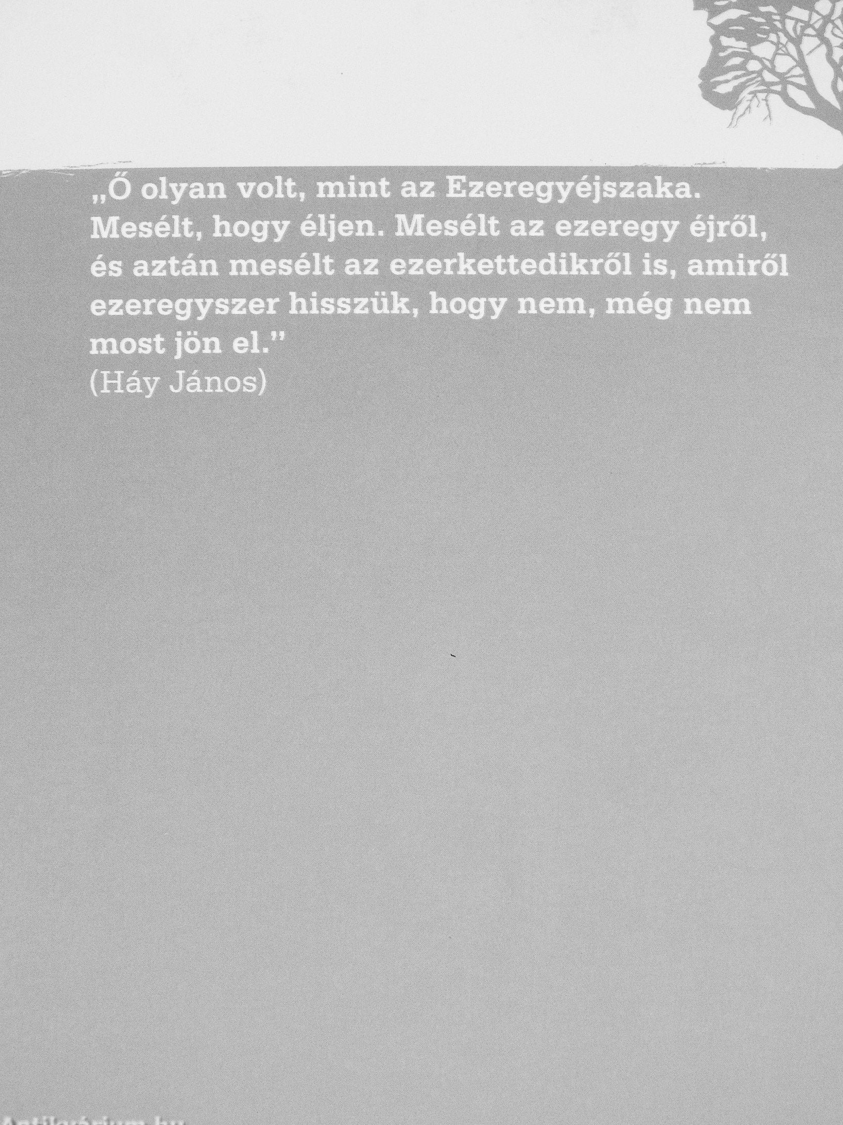 „Ö olyan volt, mint az Ezeregyéjszaka. Mesélt, hogy éljen. Mesélt az ezeregy éjről, és aztán mesélt az ezerkettedikről is, amiről ezeregyszer hisszük, hogy nem, még nem most jön el." (Háy János)