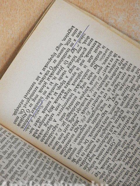 A borító kopott, a lapélek foltosak. Az előlapon tulajdonosi bejegyzés, néhány lapon aláhúzás látható.