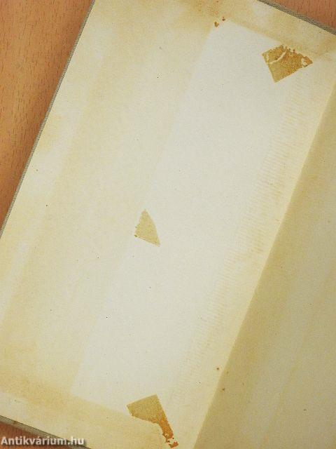 A borító és a lapélek foltosak. Az előzéklapon ragasztás nyomai és elszíneződés látható.