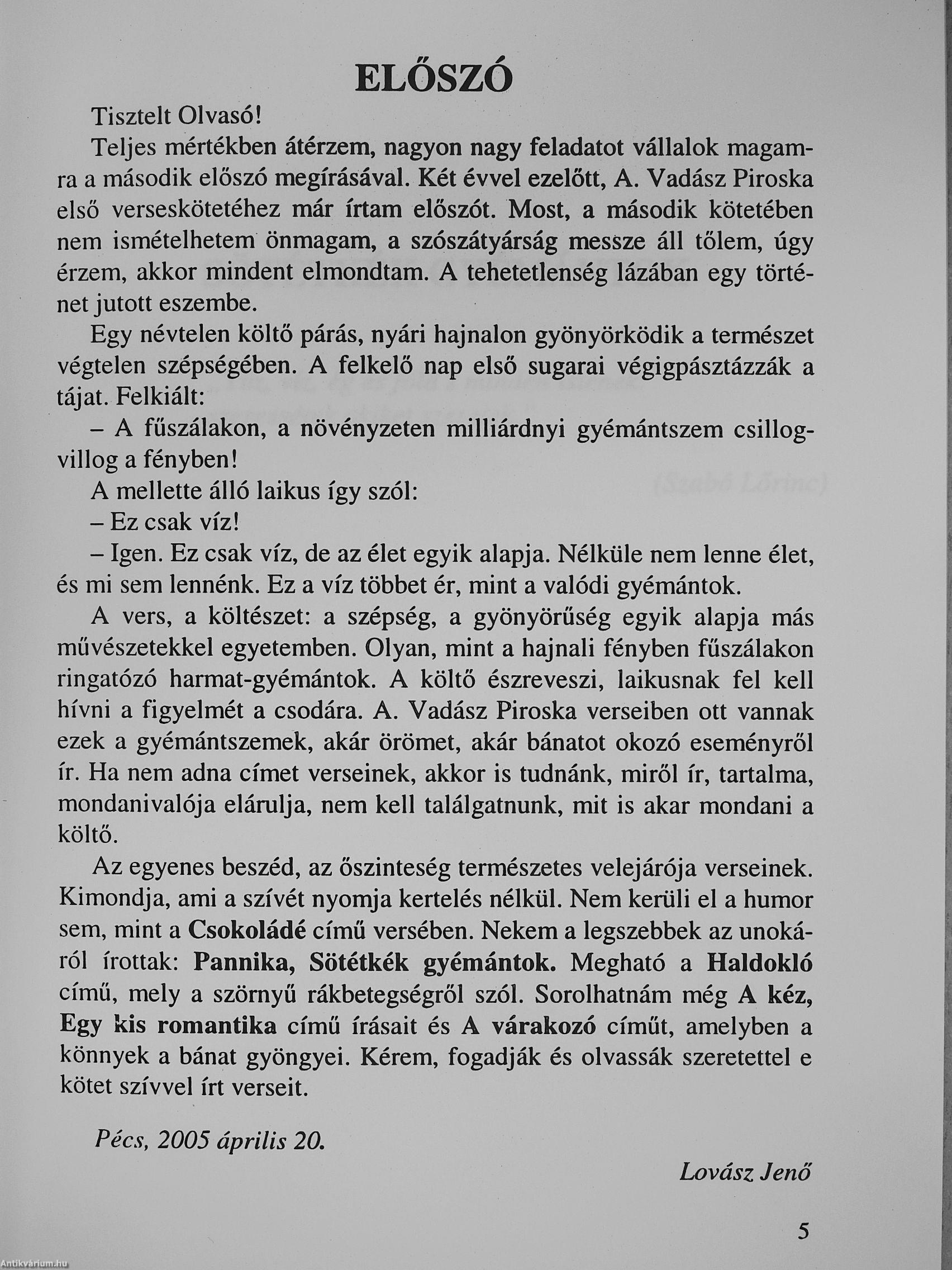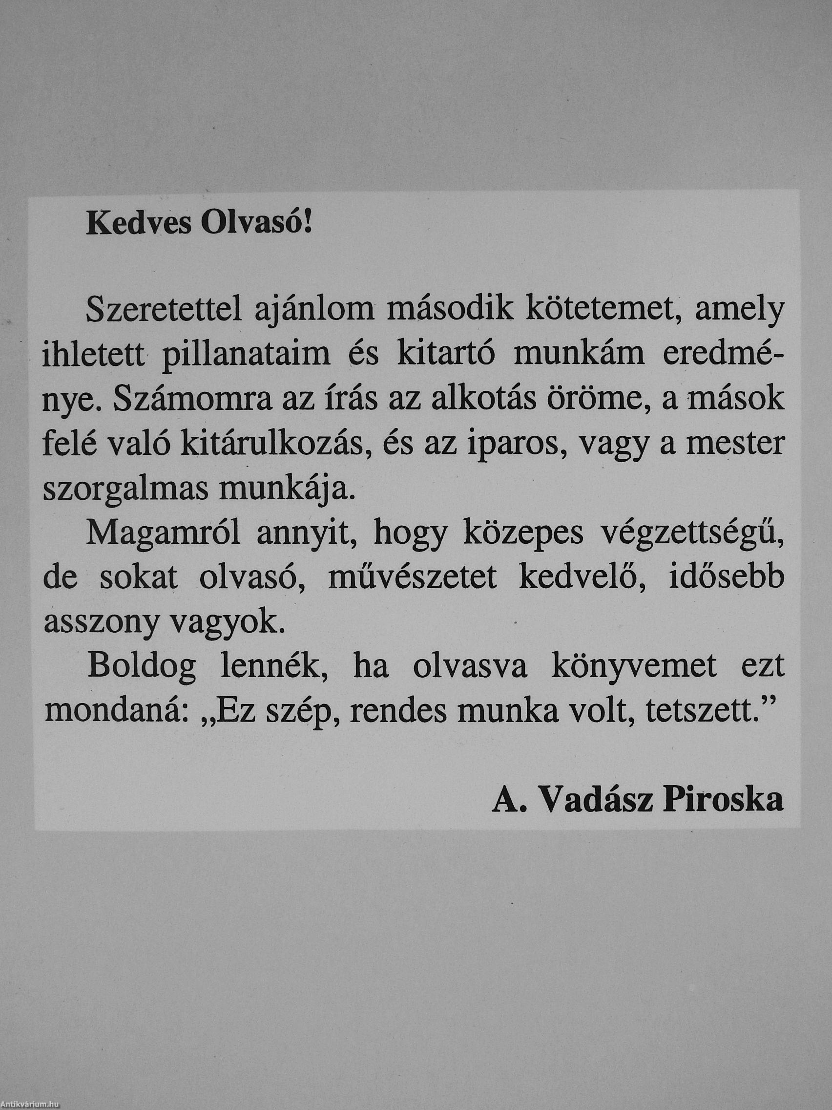 Megjegyzés: A. Vadász Piroska szerző által dedikált példány.