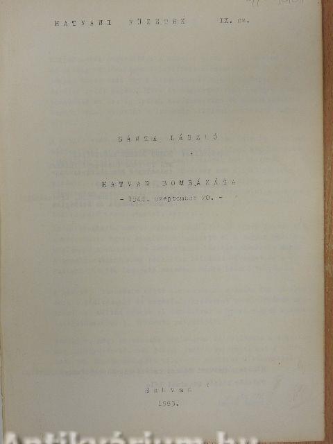 Kiadó: Hatvani Városi Tanács VB. Művelődési Osztálya