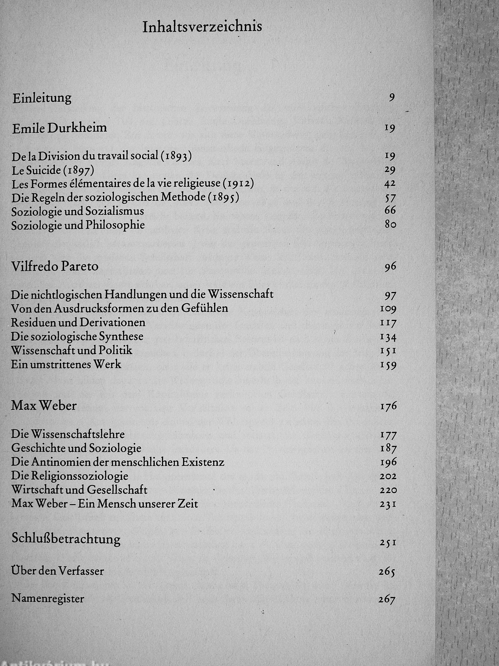 im Band «Hauptströmungen des modernen soziologischen Denkens» Dürkheim, Pareto und Max Weber.