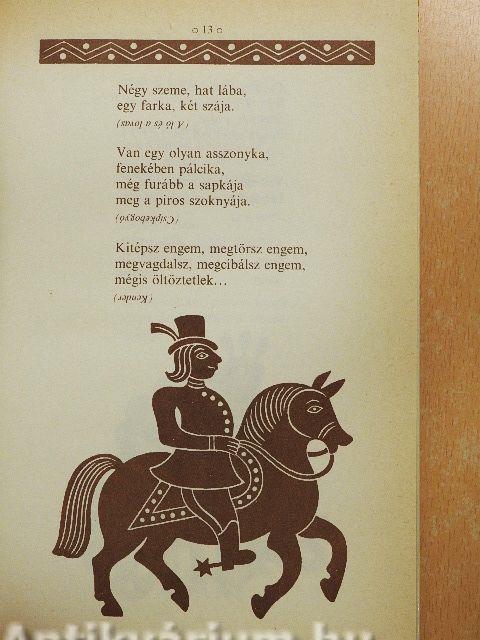 | Két tüzes tál föld felett száll (Román találós kérdések Bukovinából) | 42 |