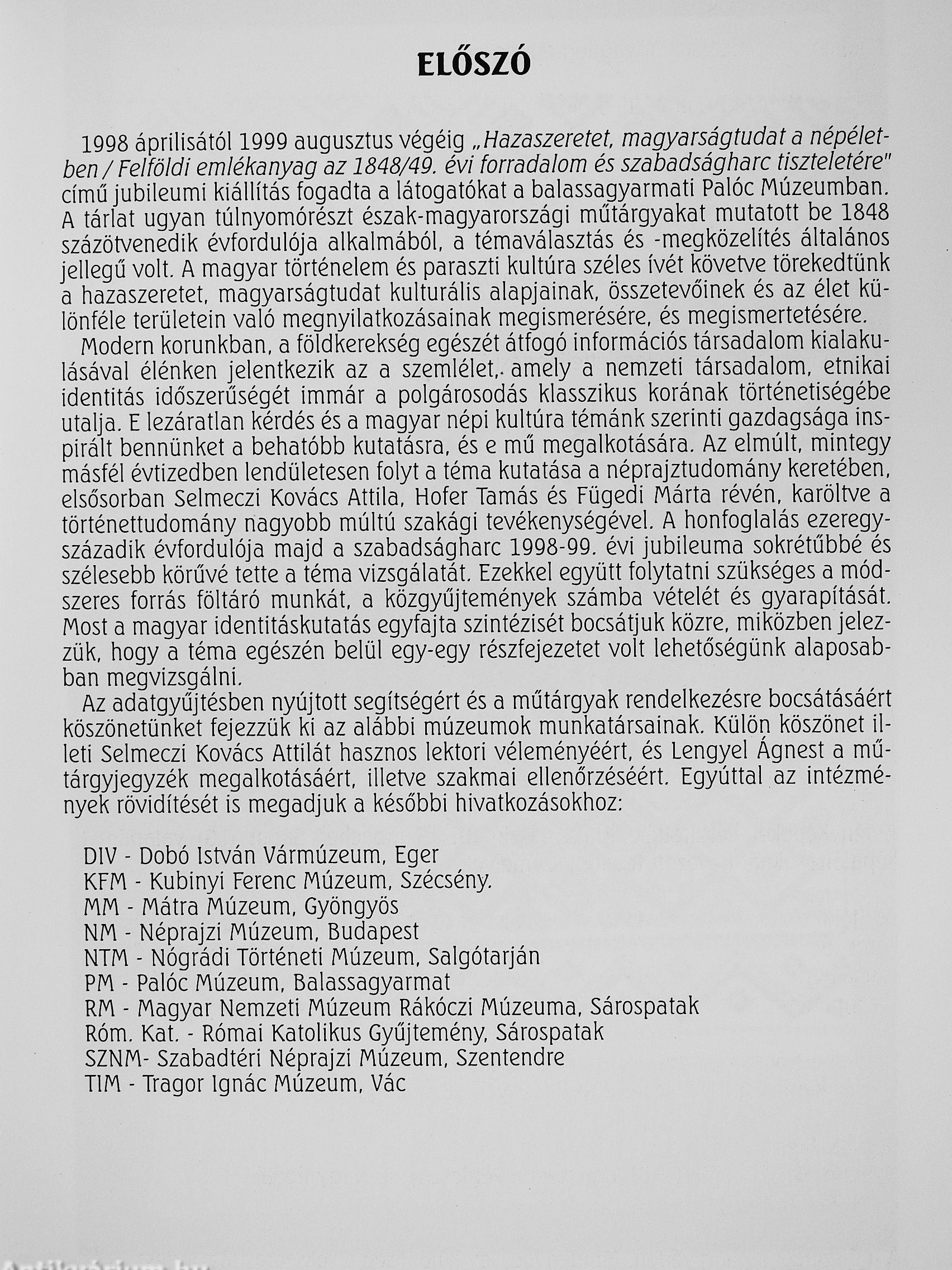 Modern korunkban, a földkerekség egészét átfogó információs társadalom kialakulásával, élénken jelentkezik az a szemlélet, amely a nemzeti társadalom, etnikai identitás időszerűségét immár a polgárosodás klasszikus korának történetiségébe utalja. E lezáratlan kérdés és a magyar népi kultúra témánk szerinti gazdagsága inspirálta behatóbb kutatásra, és e könyv megalkotására.