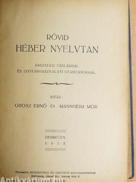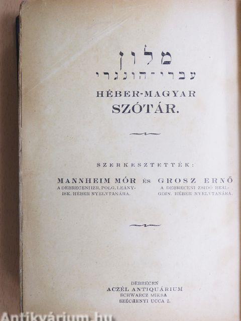 Megjegyzés: Szótár és nyelvtani rész egyben. A nyelvtani részt írták és a szótárat szerkesztették Mannheim Mór a Debreceni Izr. Polg. Leányisk. héber nyelvtanára és Grosz Ernő a Debreceni Zsidó Reálgimn. nyelvtanára. Nyomatott Herskovics és Deutsch könyvnyomdájában, Debrecenben.