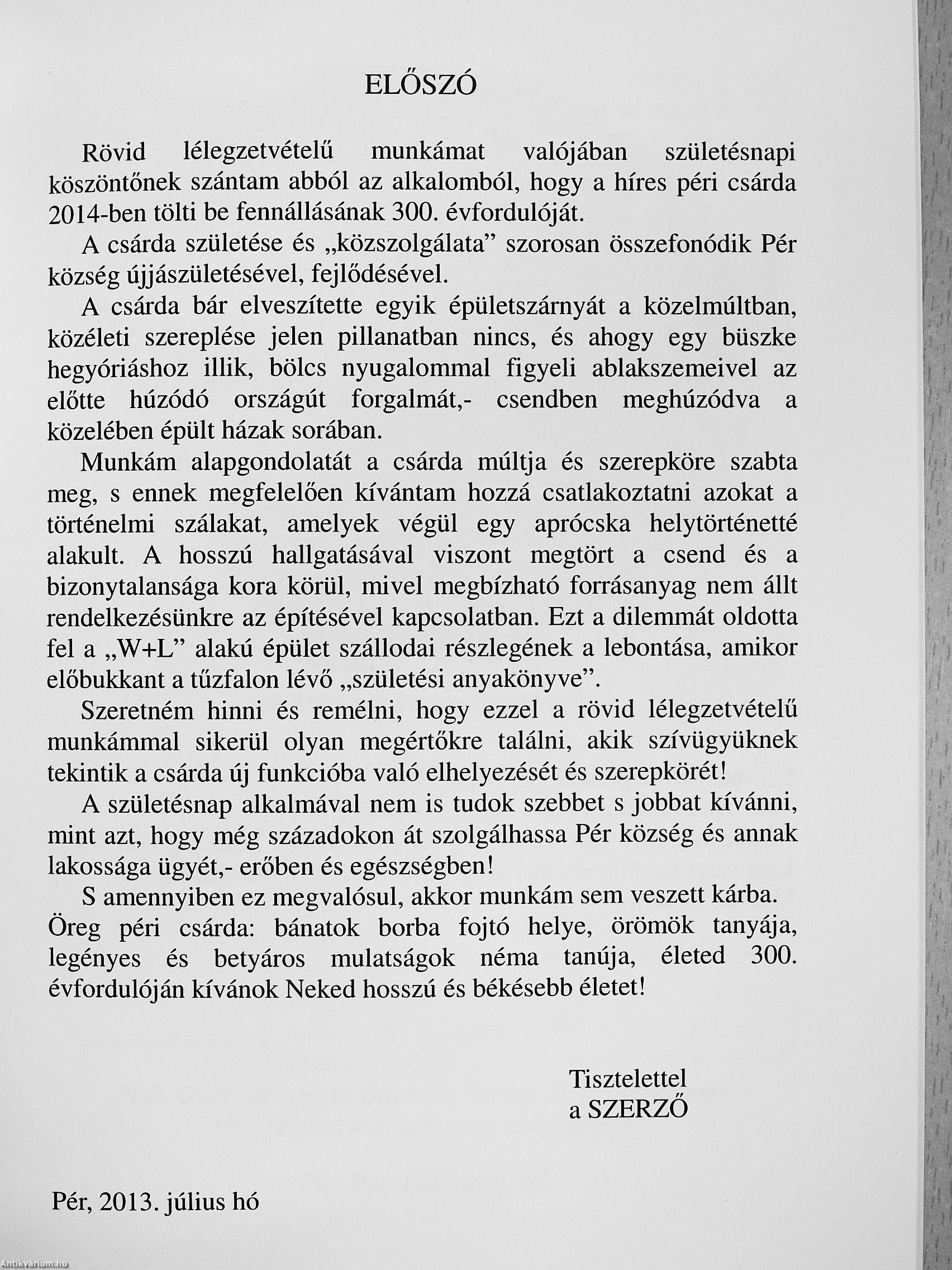 ,,A csárda környékének a helyi lakosokkal törléiiö betelepítése szerencsés megoldásnak számított és a kívánt eredménnyel járt. Biztonságosabbá vált az élet, csökkent az egymással való kocsmai leszámolás, a véres verekedések is megszűnőben voltak, de ha voltak is, azok már nem a csárdában történtek.