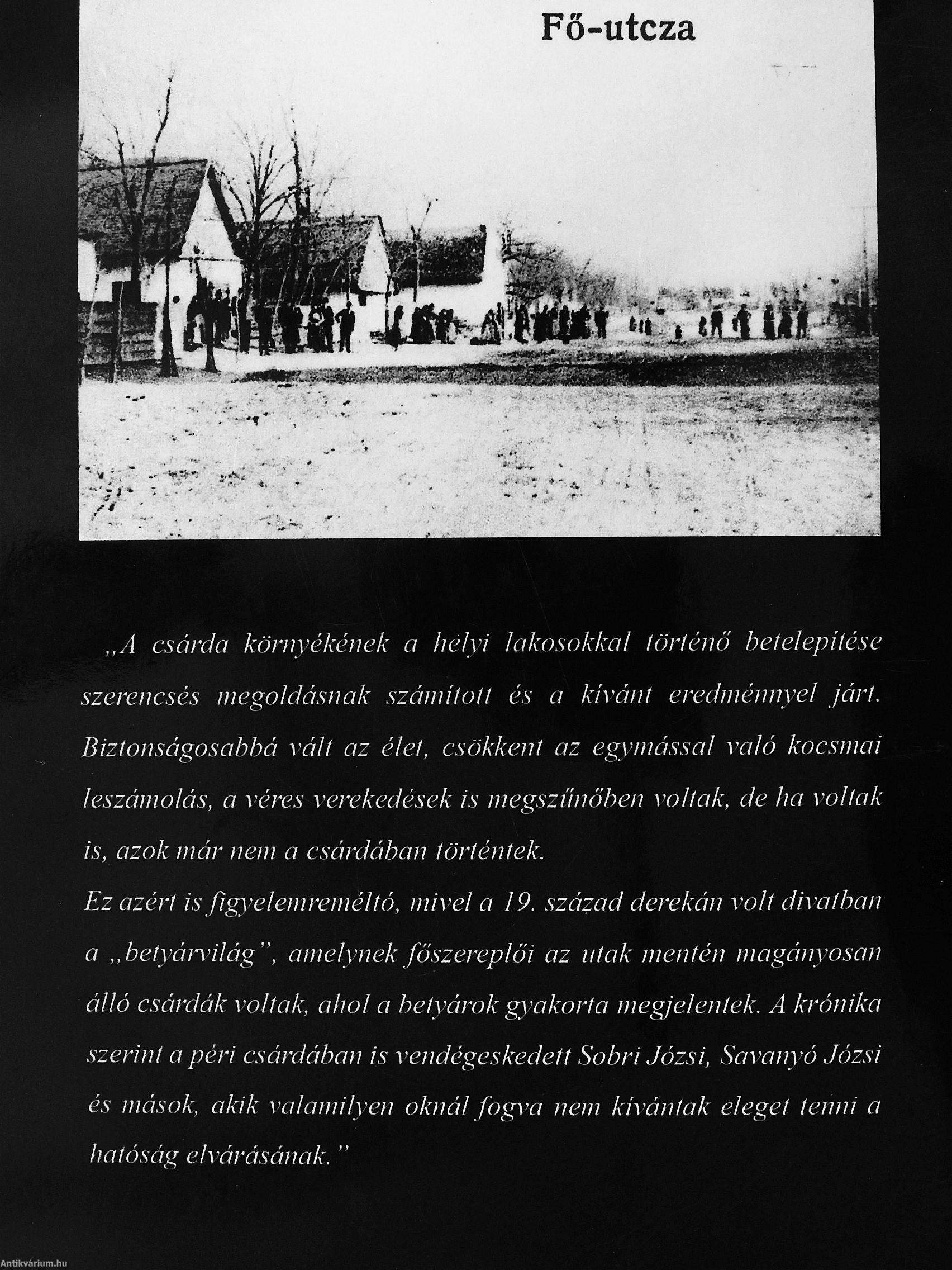 Ez azért is figy'elemreméltó, mivel a 19. század derekán volt divatban a „betyán'ilág", amelynek főszereplői az utak mentén magányosan álló csárdák voltak, ahol a betyárok gyakorta megjelentek. A krónika szerint a péri csárdában is vendégeskedett Sobri Józsi, Savanyó Józsi és mások, akik valamilyen oknál fogva nem kívánlak eleget tenni a halósás elvárásának. "