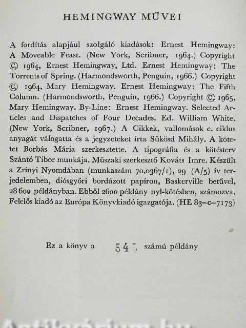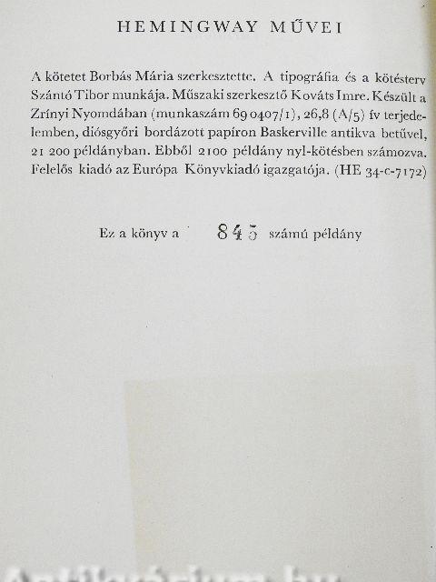 | Sorozatcím: | Ernest Hemingway művei |