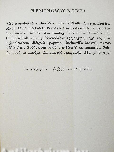 | 3. kötet: Akiért a harang szól (1970) | 580 p. |