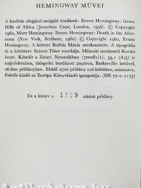 | 4. kötet: Afrikai vadásznapló/Halál délután (1971) | 811 p. |