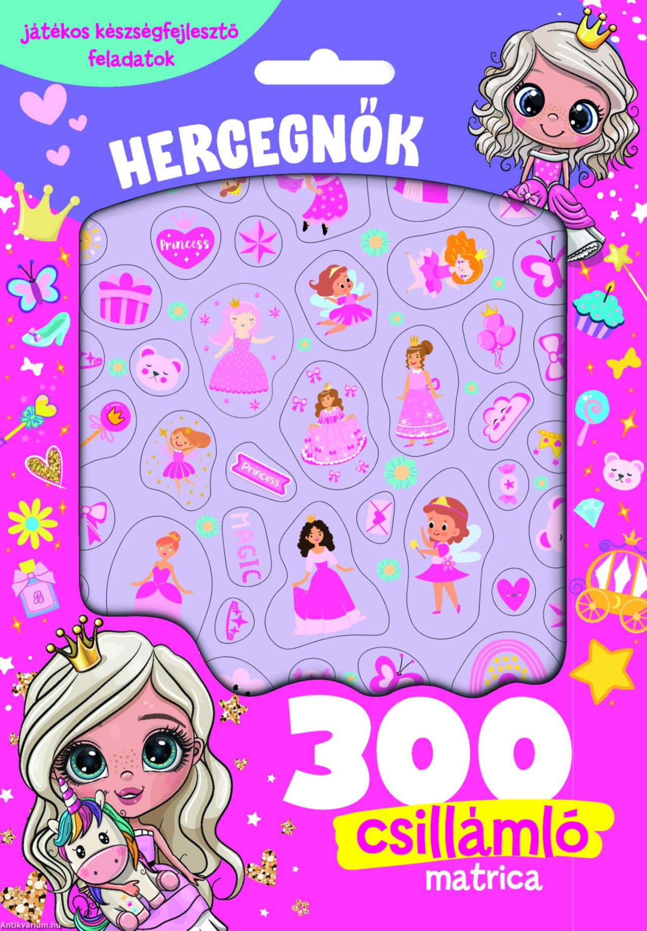 Lépj be a hercegnők varázslatos világába, ahol játékos feladatok, színezők és rejtvények várnak rád! A 300 csillámló matrica még különlegesebbé teszi az élményt - díszíts, alkoss és álmodozz kedvenc mesebeli jeleneteiddel. Az Hercegnők foglalkoztató tökéletes választás minden kis hercegnőnek, aki imádja a csillogást és a kreatív játékot!