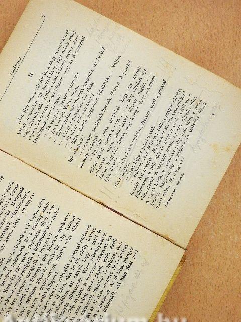 A lapélek és néhány oldal foltosak. A védőborító kopott, elszíneződött és foltos. A kötés megtört. Több oldalon bejegyzés látható. Könyvtári könyv volt.