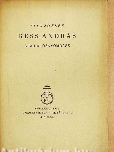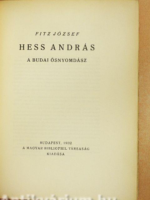 Hess András budai nyomdája létezéséről két kézzelfogható bizonyítékunk van: két nyomtatványa. A puszta lét bizonyítására ennyi elég; de egyéb adatok hiánya miatt Hess és nyomdája történetét homály fedi. Mindazt, amit tudunk róla, két nyomtatványából tudjuk. Neve egyetlen egyszer fordul elő: első nyomtatványa, a Chronica Hungarorum zárósoraiban; második nyomtatványában, a Basiliusban, már csak nevének kezdőbetűi mögé rejtőzik. Mindkét könyvben Budát jelöli meg nyomdája székhelyéül. A Chronica Hungarorumhoz előszót is írt s ebben elmondja, hogy a nyomdászatot Latiumban tanulta s hogy László budai prépost, Mátyás király alkancellárja hívta őt Budára s támogatta nyomdája berendezésében.