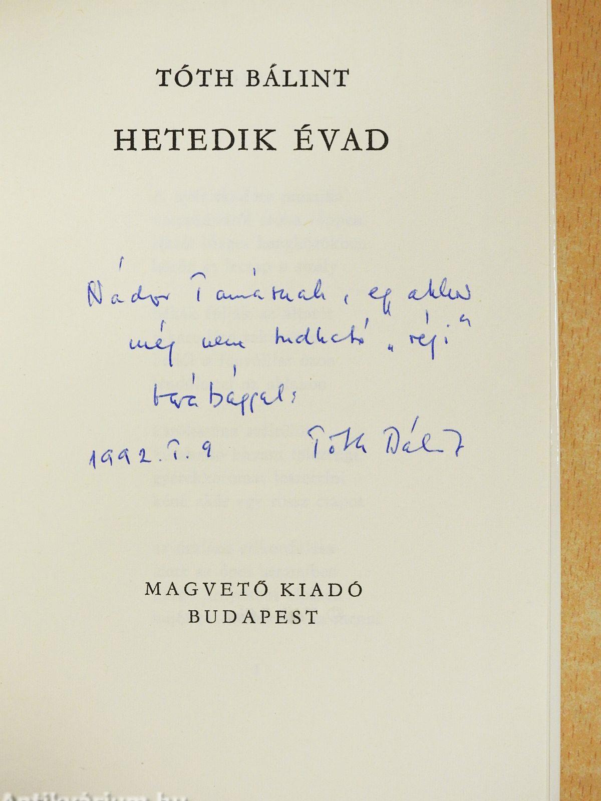 | Megjegyzés: | Tóth Bálint szerző által dedikált példány. |