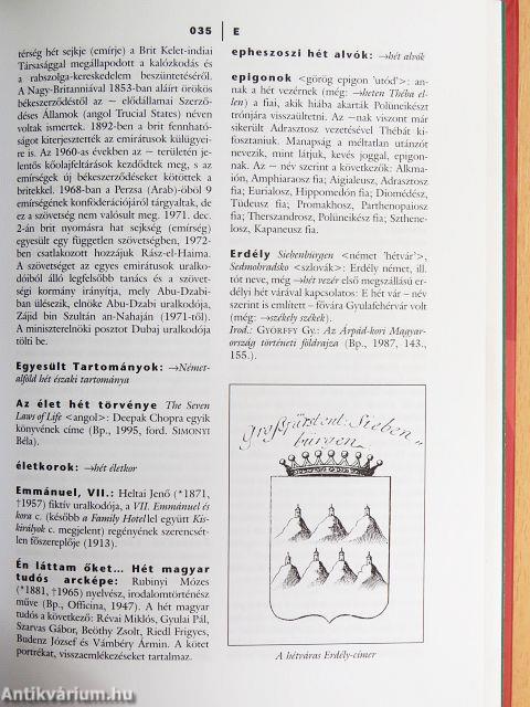 Egyedülálló könyvet tart kezében a Tisztelt Olvasó. Hasonló lexikon eddig a világon sehol sem jelent meg nyomtatásban. A források és a témakörök kiválasztásában vagy megrajzolásában nem irányított hát bennünket sem hagyomány, sem egyéb megfontolás. Célunk legfeljebb annyi volt, hogy a kiválasztott szócikkeknek valami közük legyen a hetes számhoz, és emellett valami módon felkeltsék az Olvasó érdeklődését. Ezeknek a követelményeknek, reméljük, sikerült megfelelnünk.