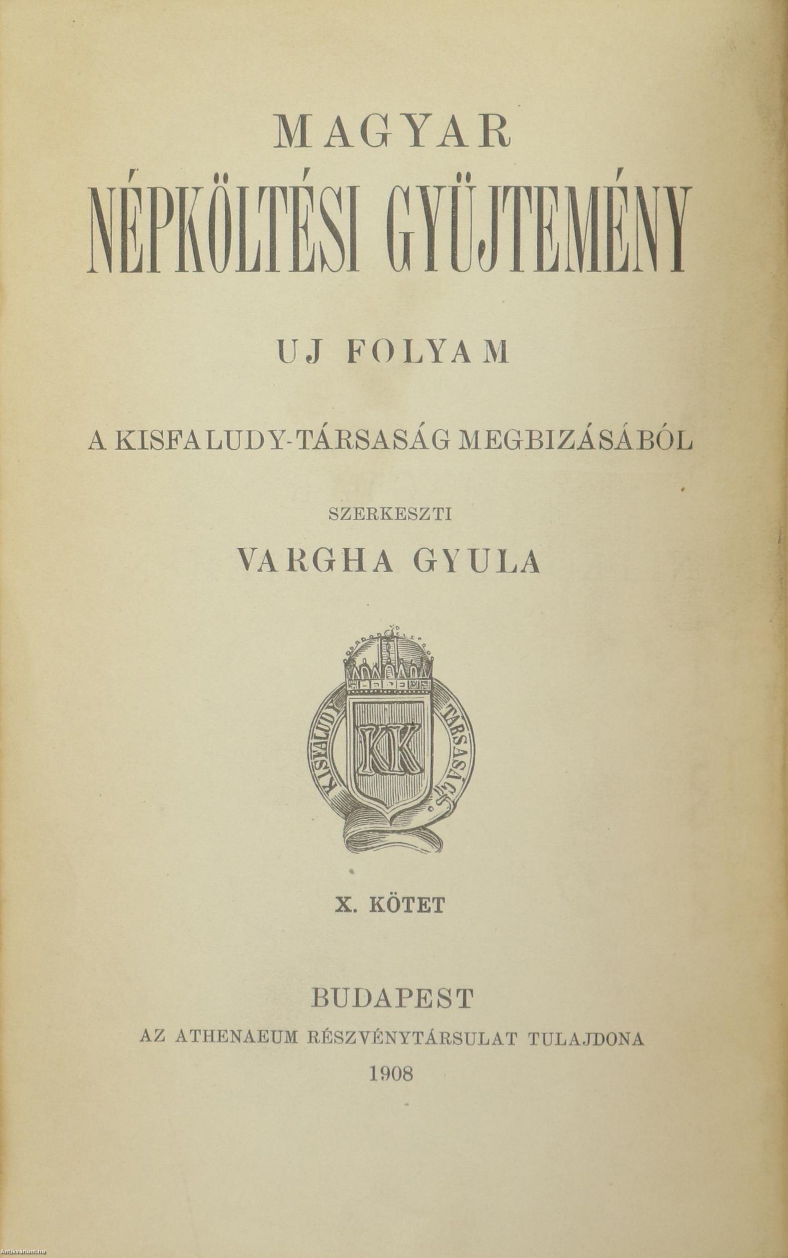 | Sorozatcím: | Magyar Népköltési Gyüjtemény |