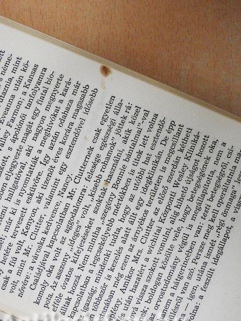 Öt évvel, négy hónappal és huszonkilenc nappal később, 1965. április 14-én a két gyilkost, a harminchárom éves Richard Eugene Hickockot és a harminchat éves Perry Edward Smitht felakasztották a lansingi fegyházban. Ennek a hat embernek életével és halálával foglalkozik a nálunk is jól ismert amerikai író, Truman Capote alkotása, melynek műfaját ő maga így határozta meg: tényregény. Ezzel azt akarja az olvasók tudomására hozni, hogy könyvében minden egyes mozzanatnak szigorú valóságalapja van: minden egyes esemény úgy történt, minden egyes szó úgy hangzott el, ahogy az anyagot elrendező, a...