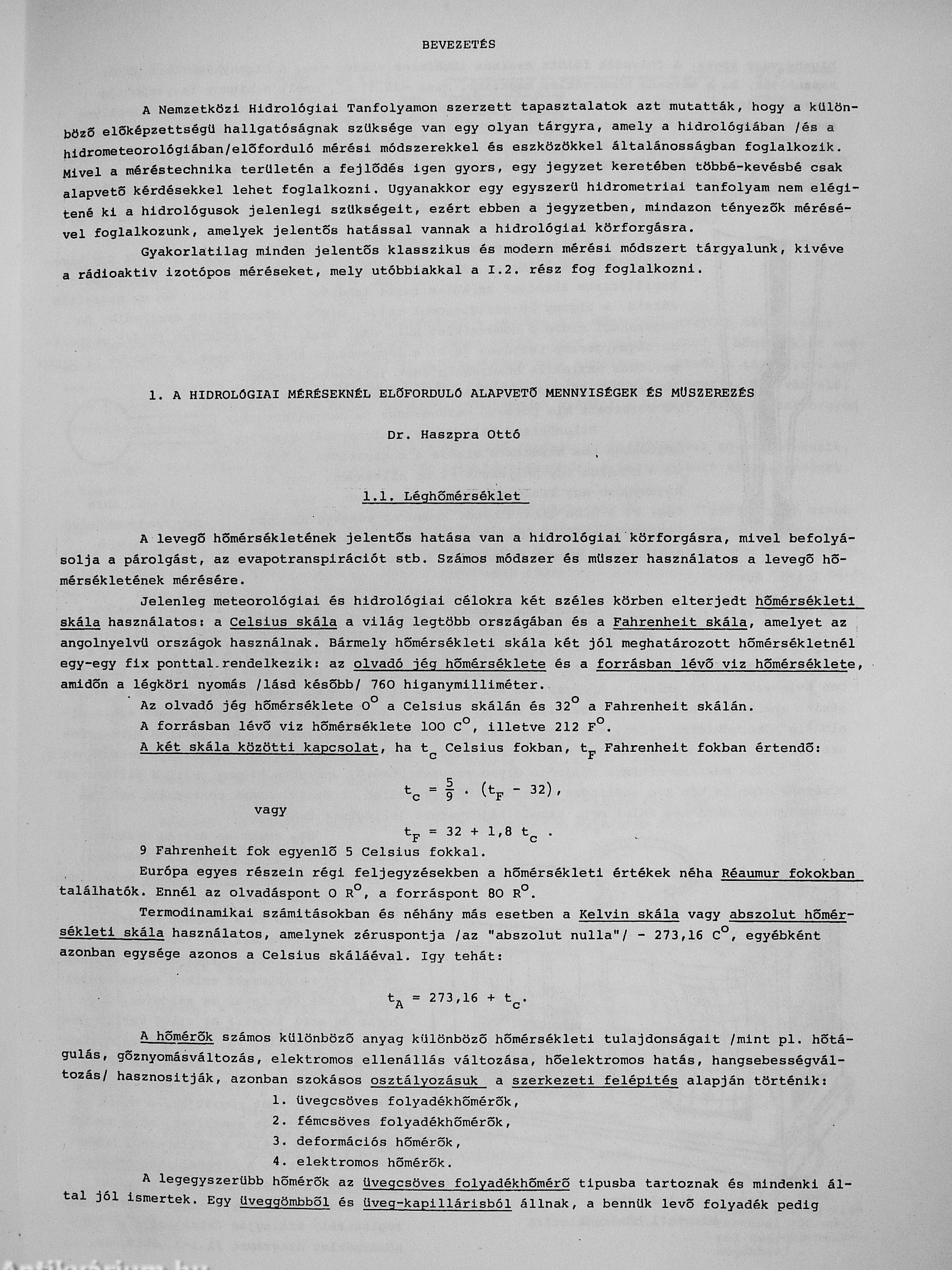 Hidrológiai mérések/Kézikönyv