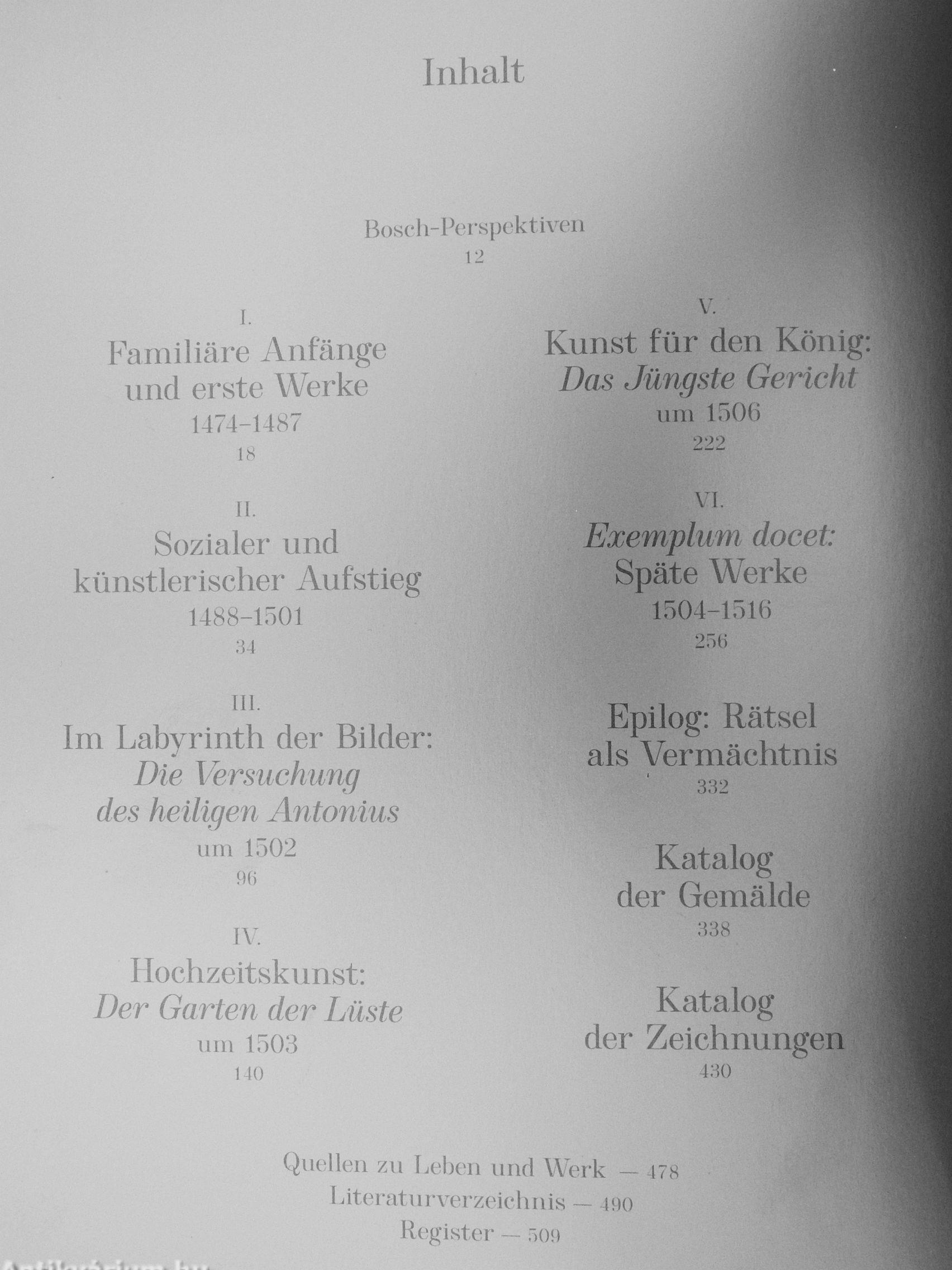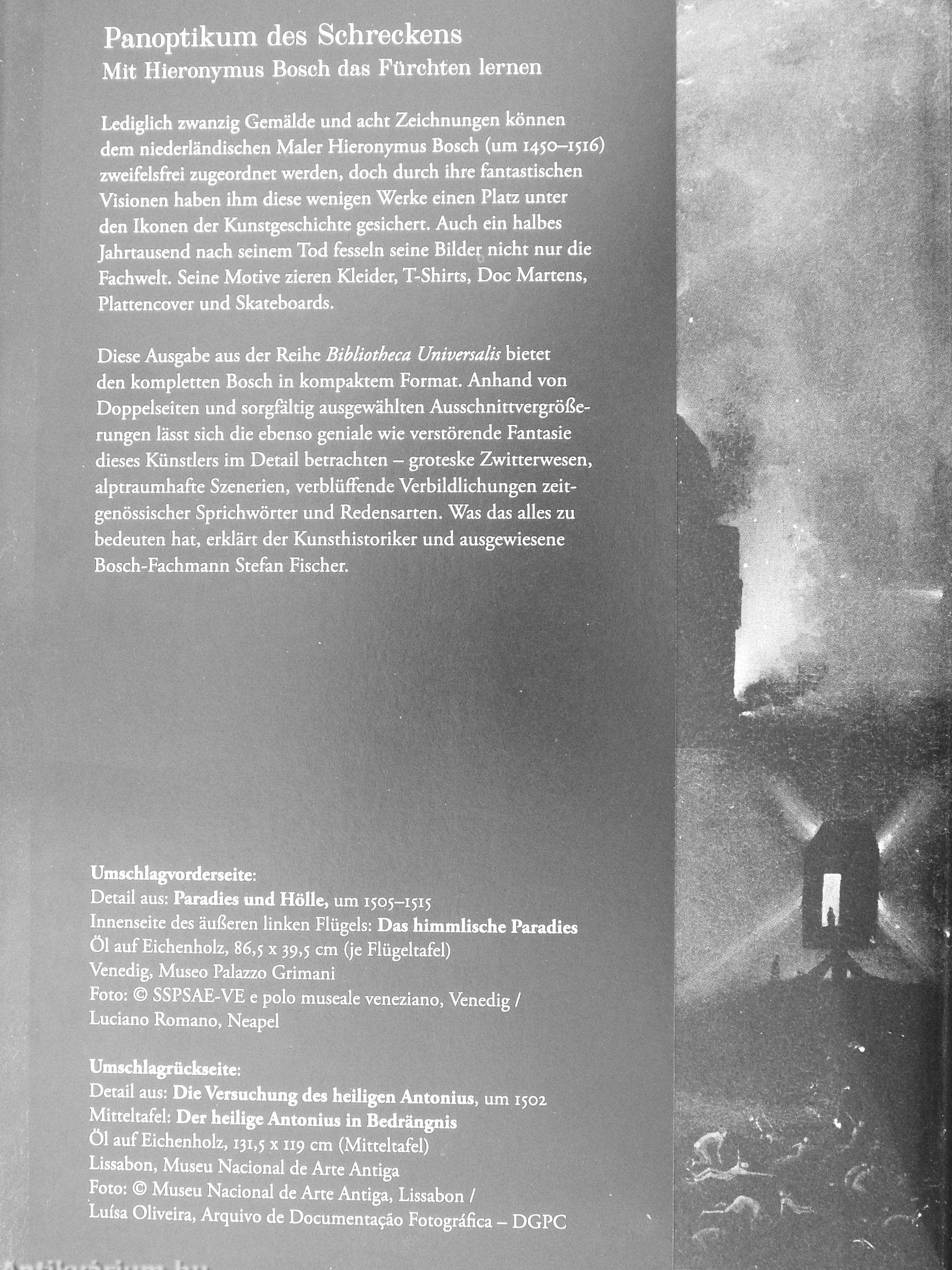 Lediglich zwanzig Gemälde und acht Zeichnungen können dem niederländischen Maler Hieronymus Bosch (um 1450-1516) zweifelsfrei zugeordnet werden, doch durch ihre fantastischen Visionen haben ihm diese wenigen Werke einen Platz unter den Ikonen der Kunstgeschichte gesichert. Auch ein halbes Jahrtausend nach seinem Tod fesseln seine Bilder nicht nur die Fachwelt. Seine Motive zieren Kleider, T-Shirts, Doc Martens, Plattencover und Skateboards.