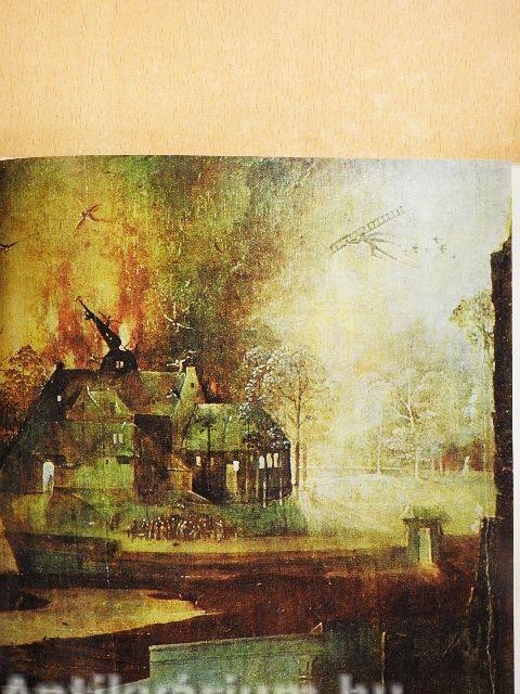 | Szent Antal megkísértése. A középső tábla részlete: táj égő épületekkel | |
