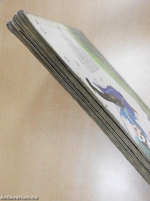 A borító foltos, kopott, a lapok védőfóliája felhólyagosodott. A borító éle sérült.