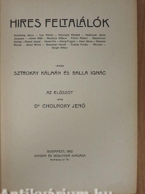 | Megjegyzés: | További feltalálók a tartalomban. Budapesti Hirlap Nyomda nyomása. |