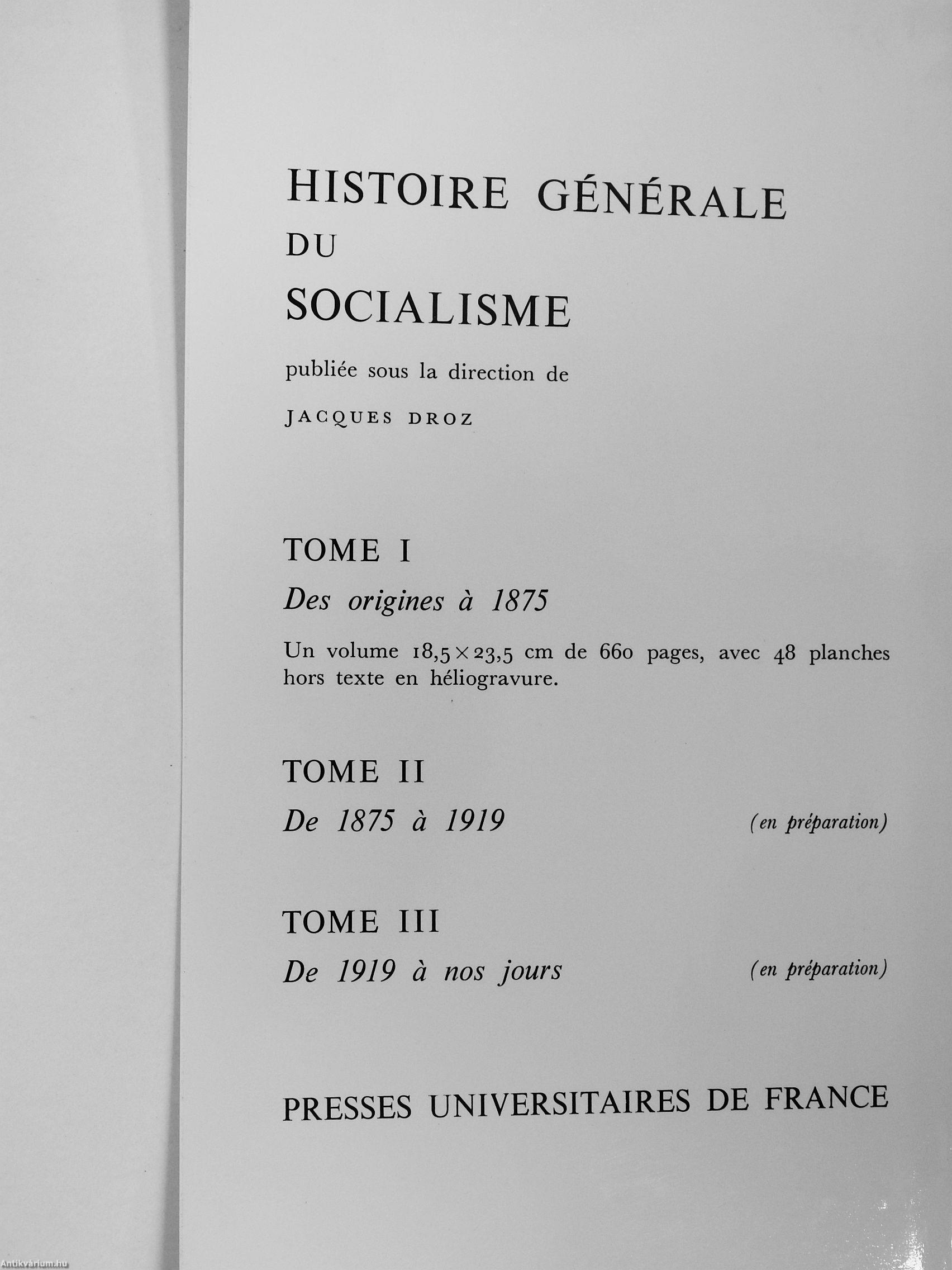 | Sorozatcím: | Histoire Générale du Socialisme |