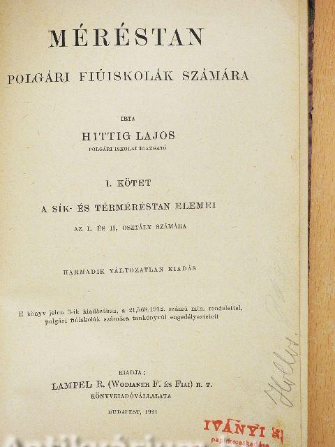 | Megjegyzés: | Harmadik változatlan kiadás. Irta Hittig Lajos polgári iskolai igazgató. Fekete-fehér ábrákkal. Nyomtatta a Franklin-Társulat nyomdája. |