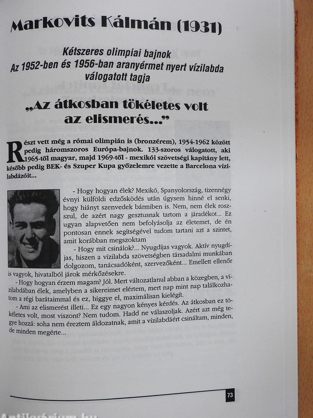 | "Minket az aranyérmek nem pénzben gazdagítottak" (Kárpáti Rudolf) | 35 |