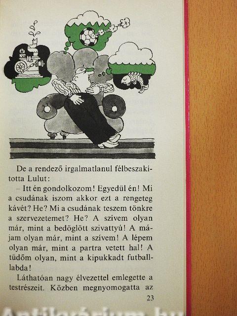 Gajzágó István, aki második és, és a Nadragulya utcában lakik, elérte azt, ami bizonyára sok gyereknek az álma: milliók láthatják majd a moziban! Mi a titka? Igen egyszerű, ti is megpróbálhatjátok. Álmodjatok valami furán kalandosat, aztán vegyetek két zölddiót a szátokba, hogy kétoldalt jól kidudorodjék, és egy szép vakációs napon slattyogjatok végig a Nadragulya utcán. Ha szerencsétek van, épp arra téved Limonádé Lulu, a Nagy Rendező első asszisztense, és nyert ügyetek van. És ha még van egy artista barátotok is, aki időnként járógipszet húz a lábára, szabad az út a világhír felé!