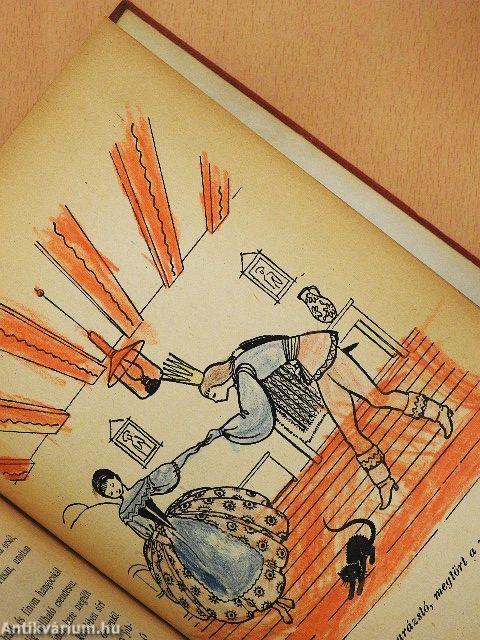 A borító kopott, a lapélek foltosak. Az illusztrációk amatőr módon színezettek.