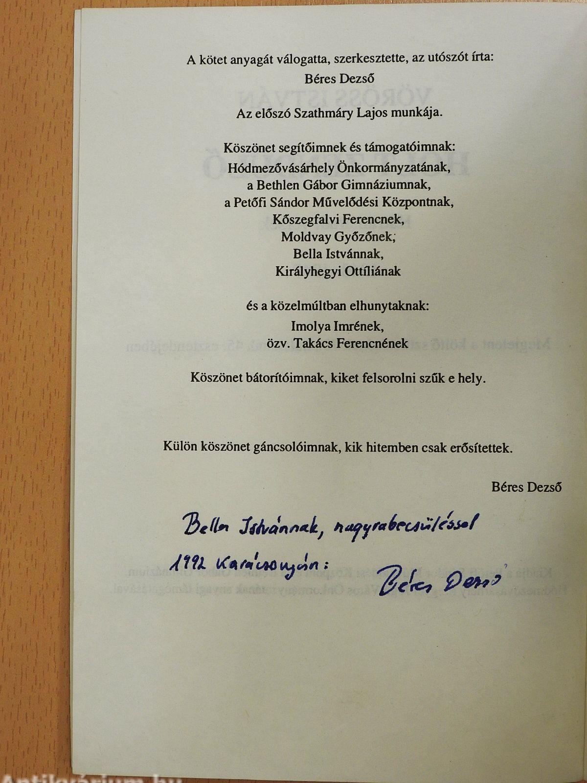 Vöröss Istvánnak, a béna vásárhelyi költőnek az életútja mindössze huszonöt esztendő volt. S ebből a huszonöt esztendőből is a leghosszabb szakaszt a kisgyermekkor jelentette, melynek folyamán a költői adottságok még nem emelkedhettek a készségek szintjére. A gyermekben a költő csak a gimnázium első éveiben jelentkezett, az eszmélkedés kezdeteinek idején. A gyermekifjú a nap egyik felét az emeleti tanteremben töltötte. Az első sor jobb szélén, a tanyavilágra nyíló ablak mellett volt a helye. Onnan bámulta „hódmező" távlatait, vagy figyelte az őt érdeklő tanári szókat. Együtt bólintott velem, ha mondanivalómat érdekesnek találta, és felhúzott szemöldökkel együtt tiltakozott velem, ha mondanivalóimban tiltakozást érzett. Repesett a tekintete, mikor hozzákezdhetett dolgozata tételének megírásához, és megvallom, én is repesve vittem haza a füzeteket, és az ő dolgozatát olvastam el először. Éreztem, nagyobb dolog van itt készülőben. Diáktársai tolták kerekes székét végig az utcákon az iskoláig, majd onnan haza. Ugyancsak diáktársai vitték ki őt, a béna diáktársat, vakációk idején a város határába, hogy ő is lásson tágabb világot, a tanyákat, a Tiszát. Ez a világ lett aztán az ő végső határköre. Odahaza az anyai szeretet közvetített számára élményeket. A sötétes kis szobában az udvaron, az utcákon és az iskolában elébe kerülő emberek, tárgyak, rezzenetnyi események, analógiák és asszimilációk kezdtek versekbe rendeződni, és 13-14 éves korában már bontakozott benne az érlelődő költő. Verseit eleinte szemérmesen titkolta, de mikor látta, hogy társai úgyis hozzám hozzák elszóródó verseit, megadta magát, ideadta versesfüzetét. Nem várhattam tovább, a tökéletesség felé törekvő két verseskötetének (Papírsárkány, Üvegpohár) meg kellett jelenni. A diáktársak és más jóbarátok adták össze a nyomdaköltséget. Vissza