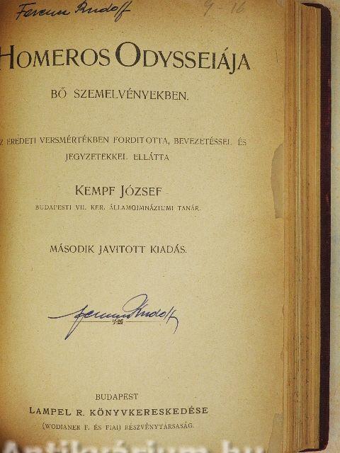 Megjegyzés: Két mű egy kötetben. Második javított kiadás. Az első mű kiadási éve 1902. Néhány fekete-fehér és egy színnel színezett képpel. Az eredeti versmértékben forditotta, bevezetéssel és jegyzetekkel ellátta Kempf József budapesti VII. ker. államgymnasiumi tanár. Nyomatott Wodianer F. és Fiainál, Budapesten.