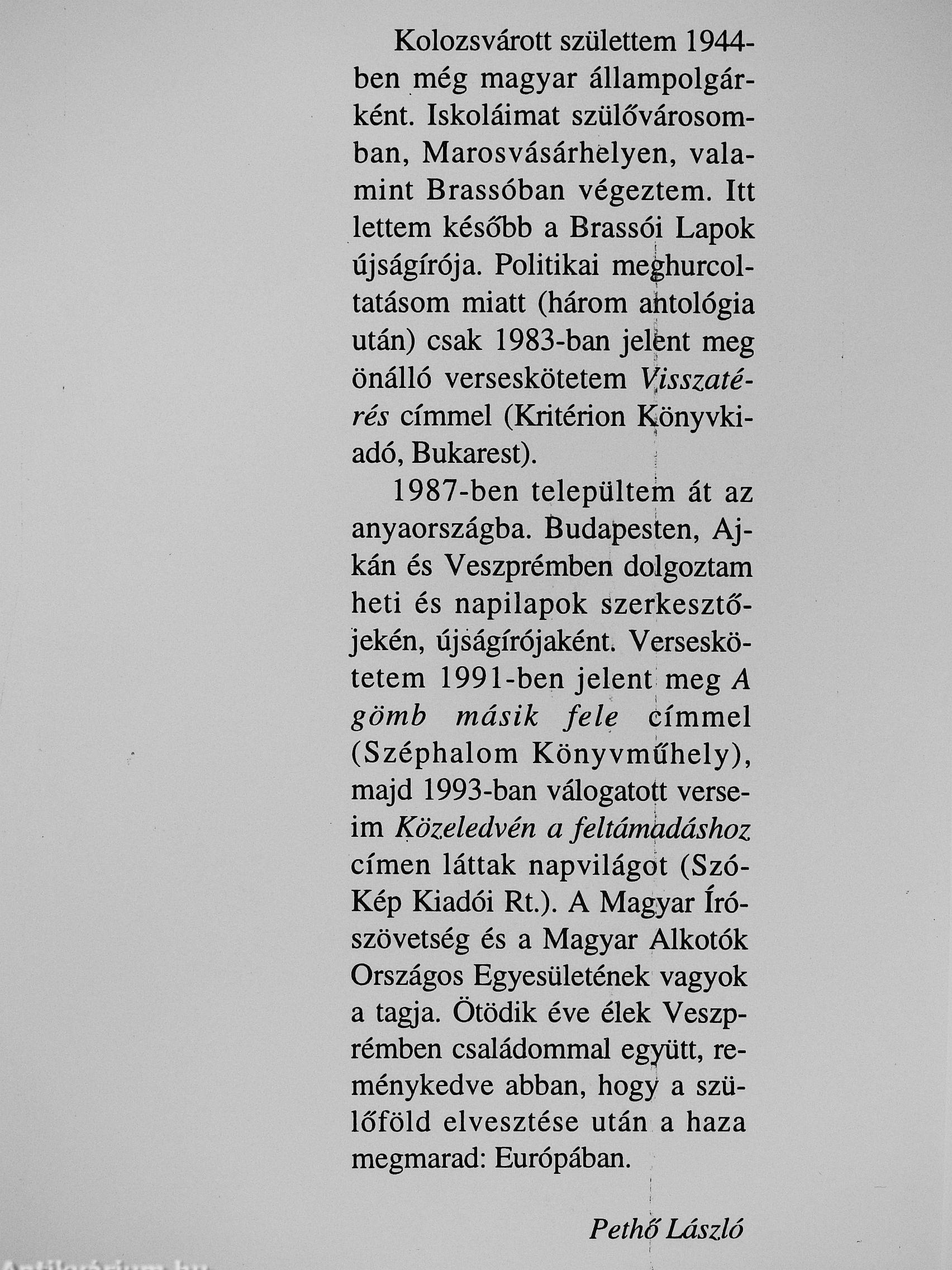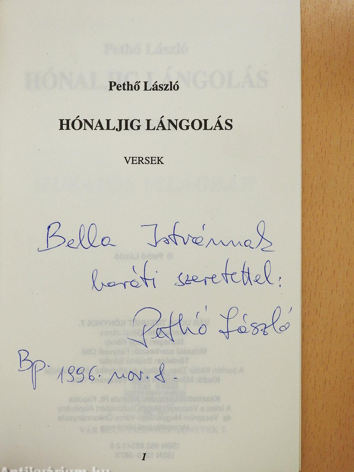 | Megjegyzés: | Pethő László szerző által dedikált példány. |