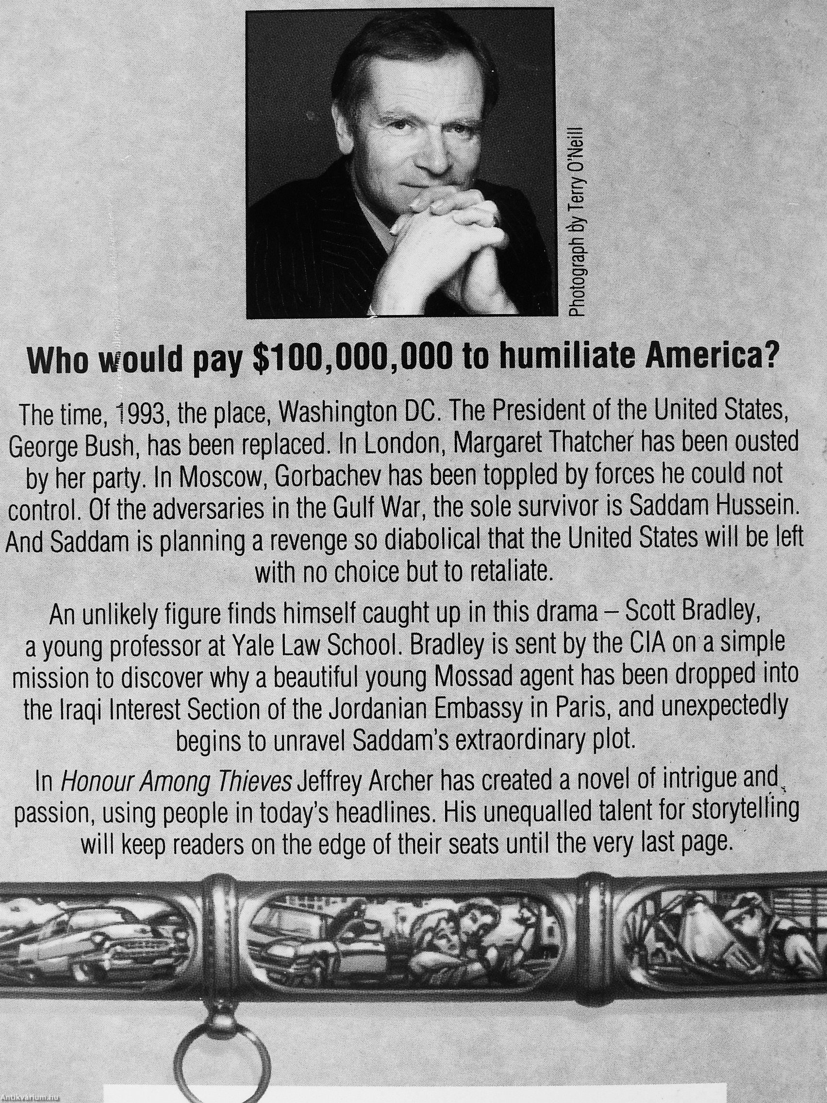 The time, 1993, the place, Washington DC. The President of the United States, George Bush, has been replaced. In London, Margaret Thatcher has been ousted by her party. In Moscow, Gorbachev has been toppled by forces he could not control. Of the adversaries in the Gulf War, the sole survivor is Saddam Hussein. And Saddam is planning a revenge so diabolical that the United States will be left