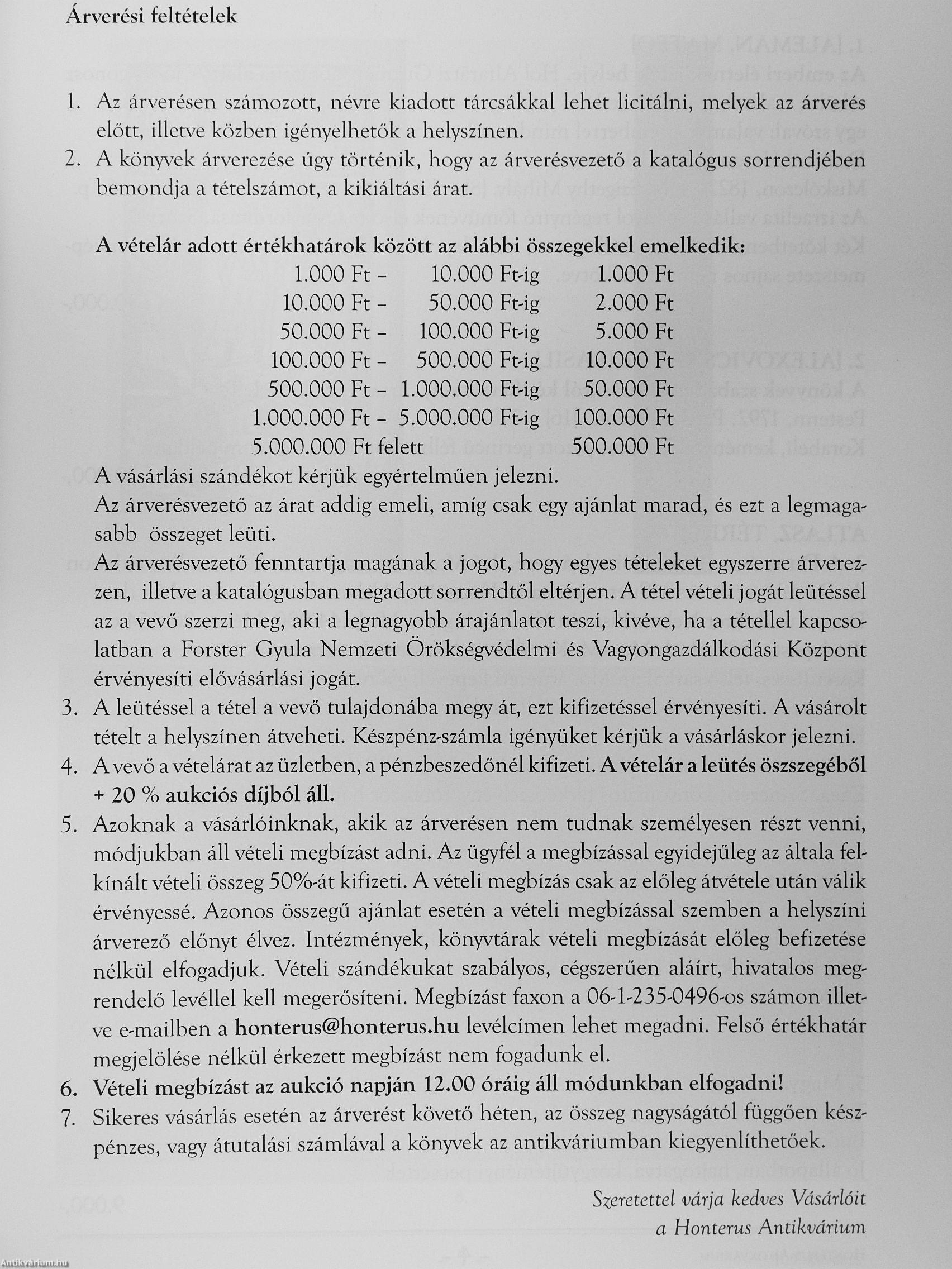 | Sorozatcím: | Honterus Antikvárium Aukció |