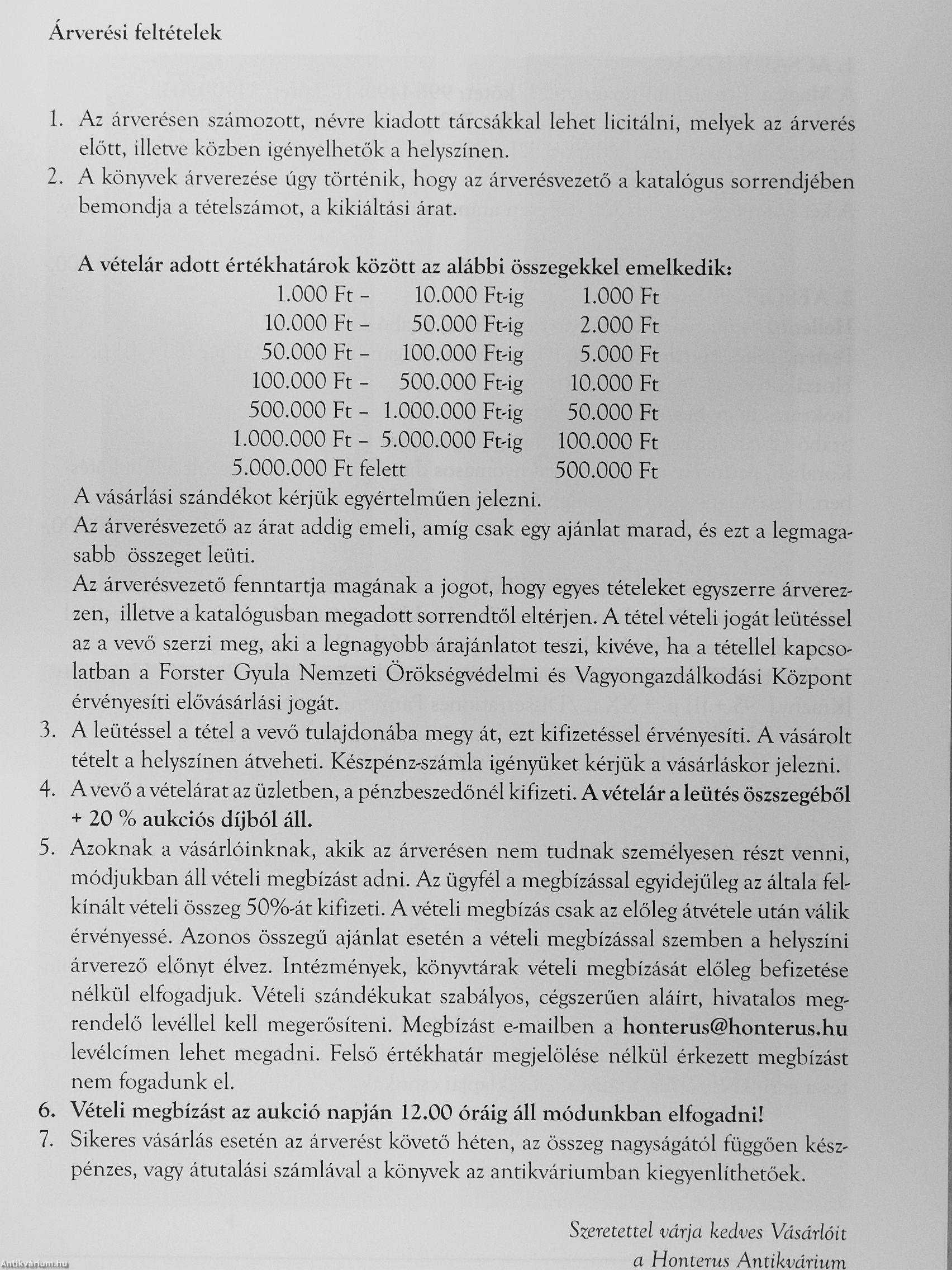 | Sorozatcím: | Honterus Antikvárium Aukció |