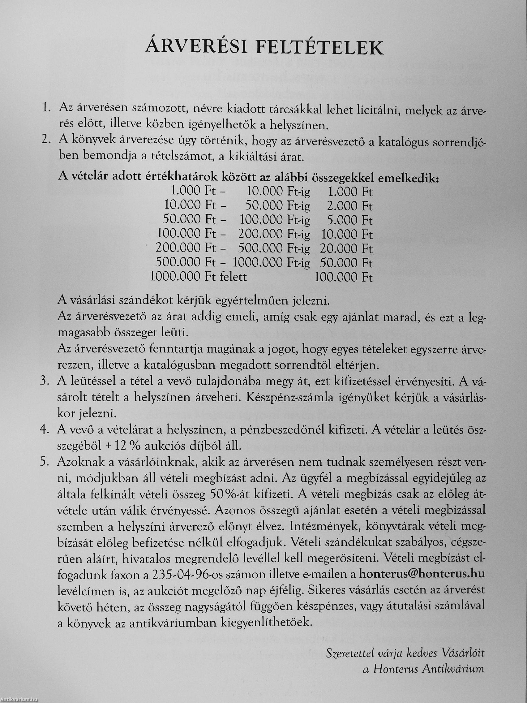 | Sorozatcím: | Honterus Antikvárium Aukció |