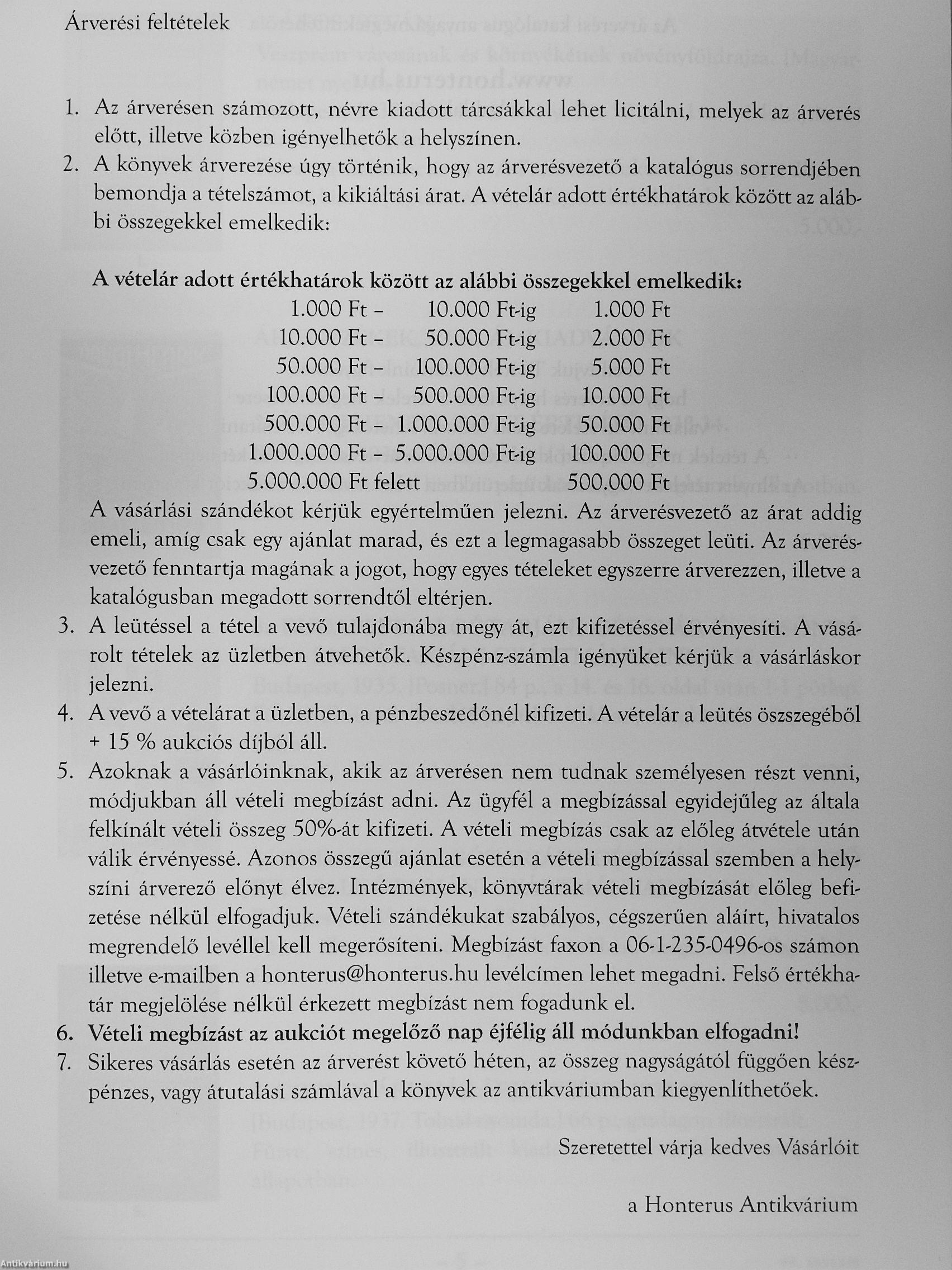 | Sorozatcím: | Honterus Antikvárium Aukció |