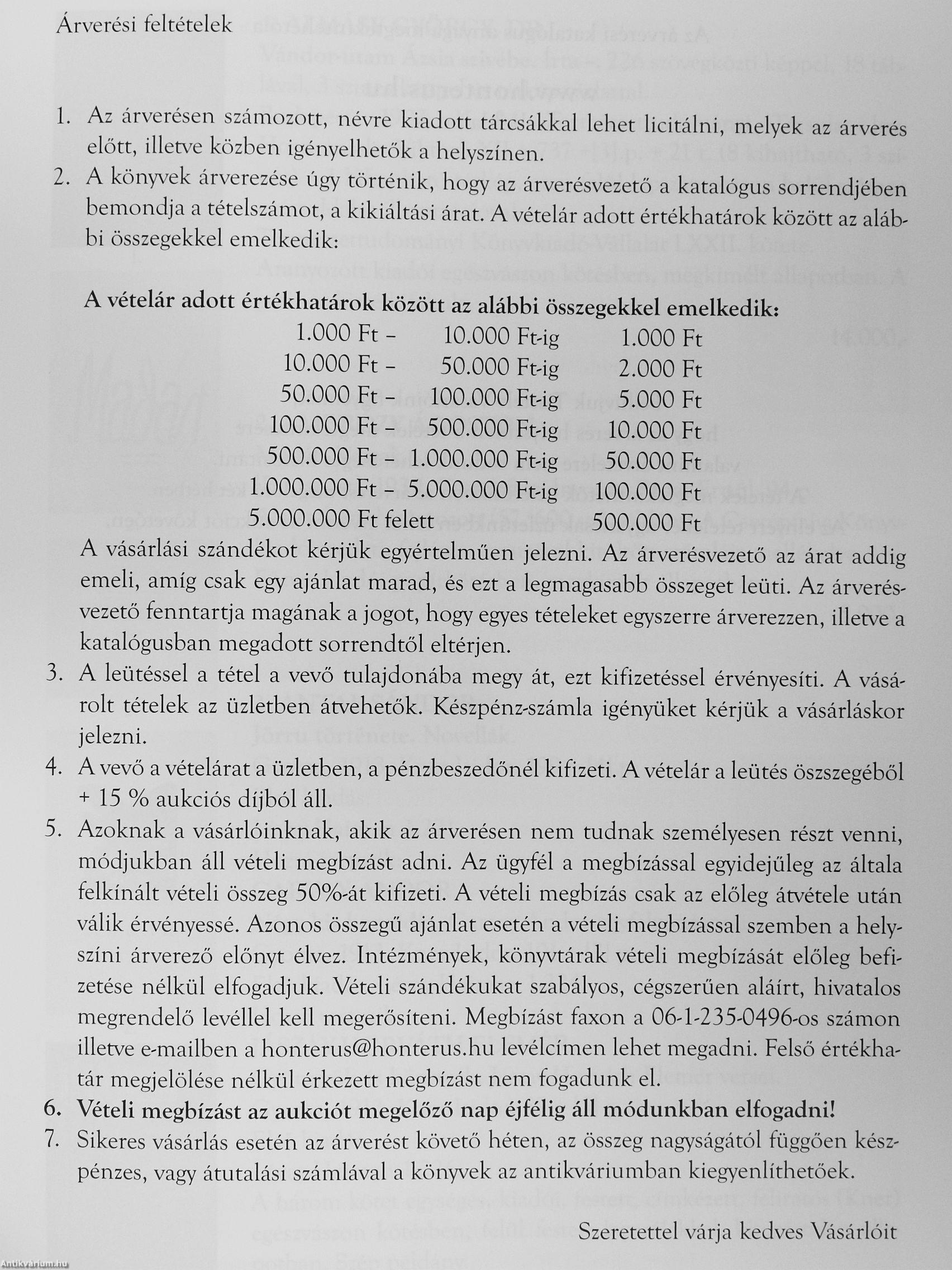 | Sorozatcím: | Honterus Antikvárium Aukció |
