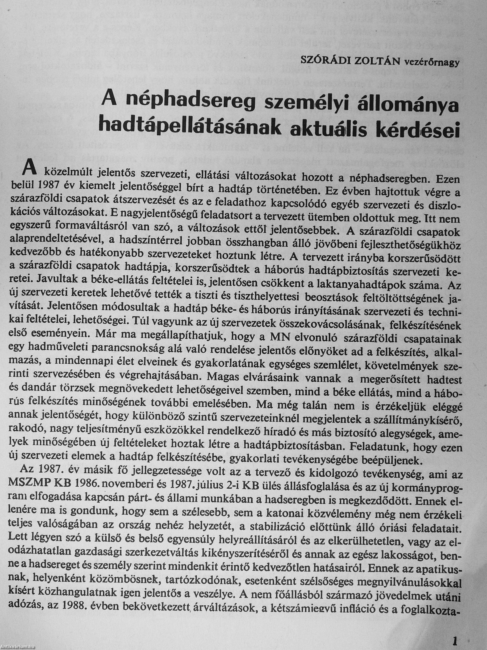 A katonai tanintézetekben végzett társadalomtudományi képzés és a politikai nevelőmunka aktuális gondjai...