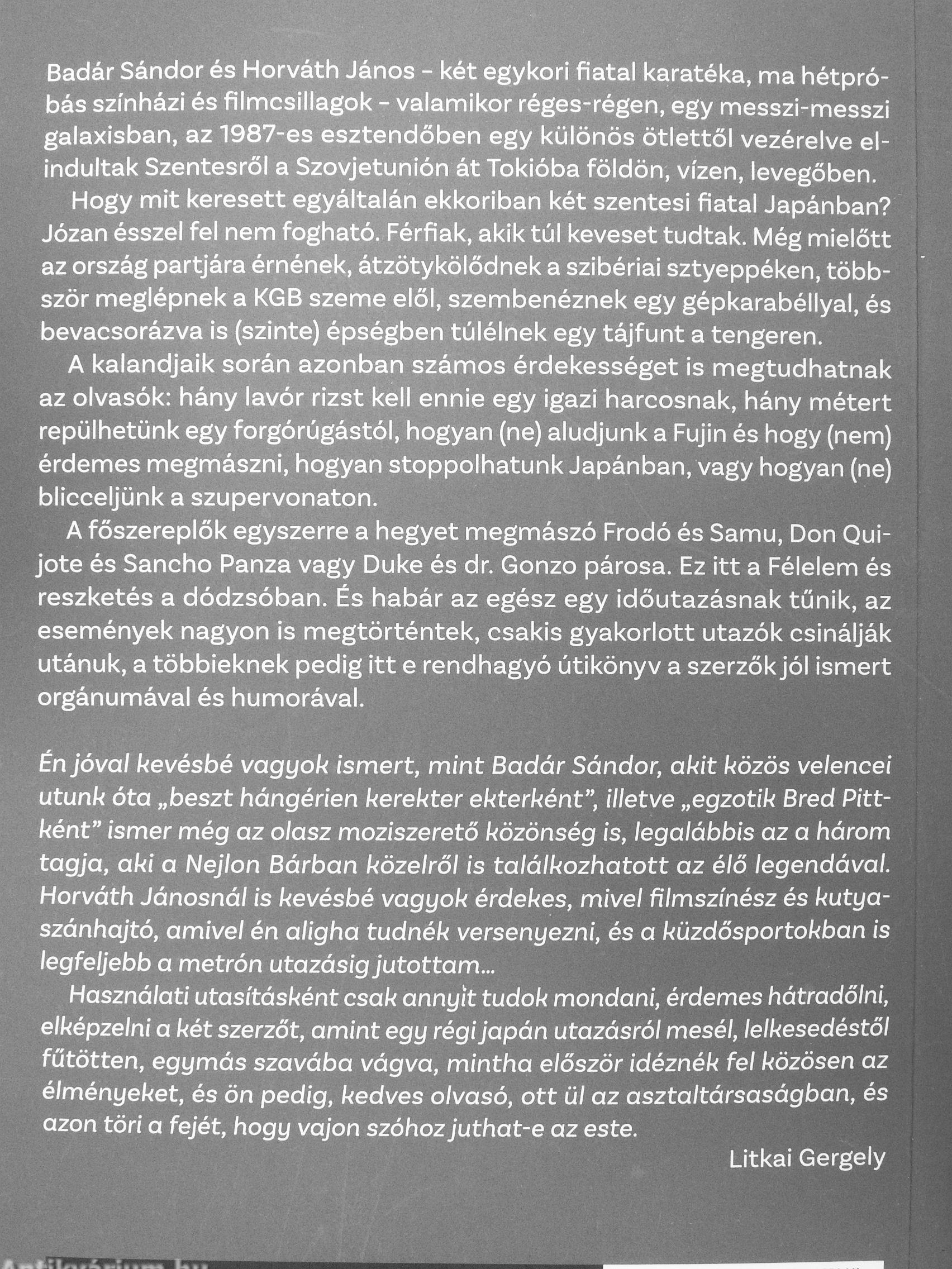 Hogy mit keresett egyáltalán ekkoriban két szentesi fiatal Japánban? Józan ésszel fel nem fogható. Férfiak, akik túl keveset tudtak. Még mielőtt az ország partjára érnének, átzötykölődnek a szibériai sztyeppéken, többször meglépnek a KGB szeme elől, szembenéznek egy gépkarabéllyal, és bevacsorázva is (szinte) épségben túlélnek egy tájfunt a tengeren.