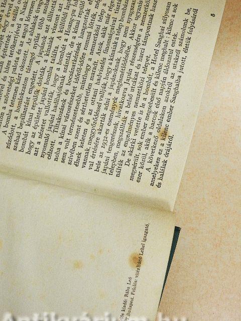 A levegőből záporozó első bombák egyike a Hotel Sanghai-ba csapott, az új, nagy épületbe, amelyet négy évvel előbb, közvetlenül az ig32-e3 harcok után építettek; a szálló oszlopsoraival, tizennyolc emeletével és híres tetőkertjével a Nanking Road-on állt, félúton a szövetségi palota és az angol lóversenytér között.