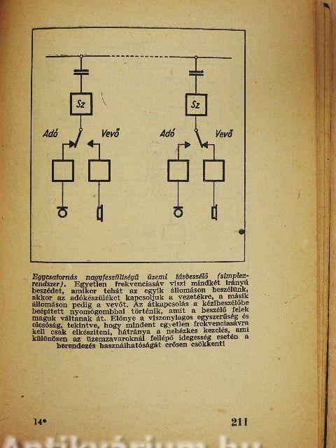 | Simplex-rendszerű üzemi távbeszélő kézi átkapcsolással | 211 |