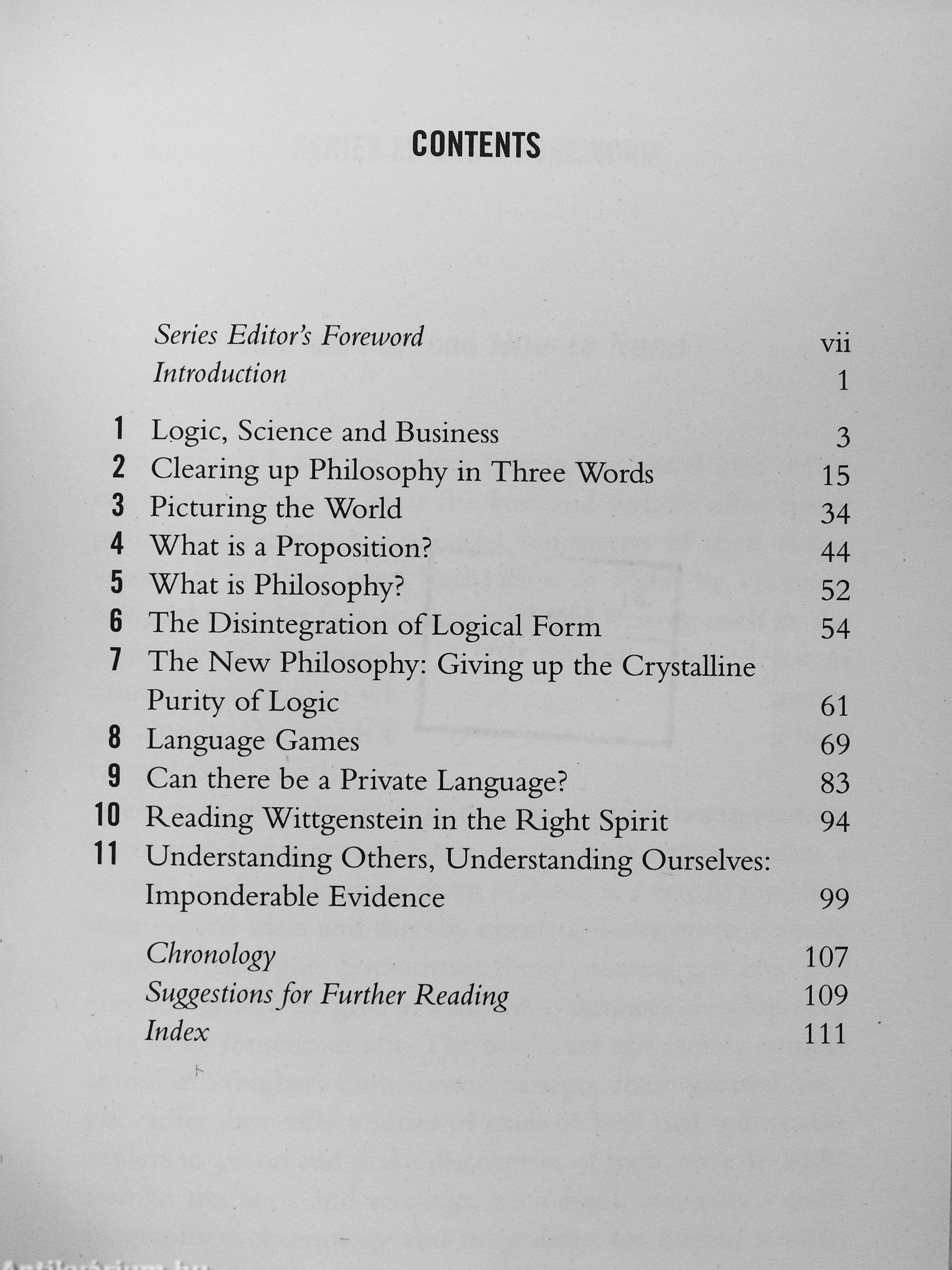 Extracts are taken from Tractatus Logico-Philosophicus and from a range of Wittgenstein's posthumously published writings, including Philosophical Investigations, The Blue and Brown Books and Last Writings on the Philosophy of Psychology.