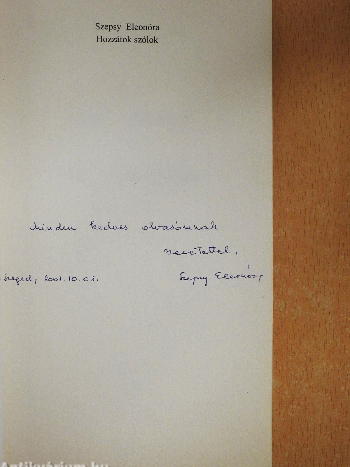 | Megjegyzés: | Szepsy Eleonóra szerző által dedikált példány. |