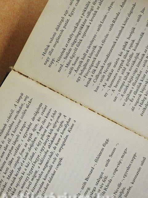 A könyvnek hat szereplője van - hat belső monológot hallunk.Ezek a monológok olykor érintik egymást, egymáshoz szólnak, de jobbára egymás mellett haladnak - a mű egységét, folyamatát kontrasztjuk és váltakozásuk ritmusa teremti meg, illetve az az összefoglaló metafora, amely megjelenik a váltakozó monológokat nagyobb egységekre - mintegy tételekre - tagoló természetleírásokban, de áthatja a szöveg egészét is, és az idő és az élet múlásának felidézésével objektív keretbe foglalja a tudattartalmak szólamainak szövedékét.... Tovább