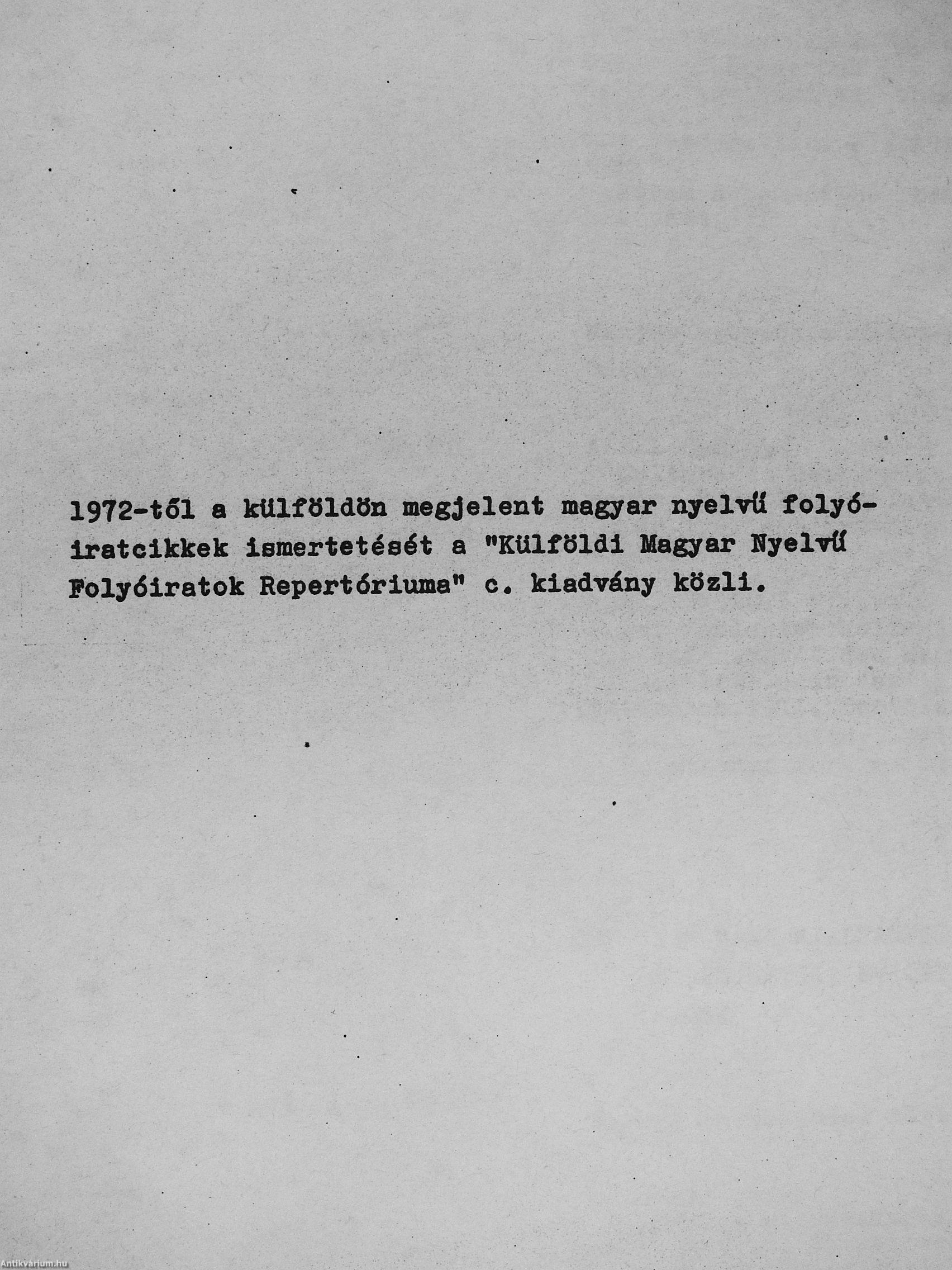 | Megjegyzés: | 4 füzet egy könyvben. Teljes évfolyam. Magyar Folyóiratok Repertóriuma negyedéves melléklete. |